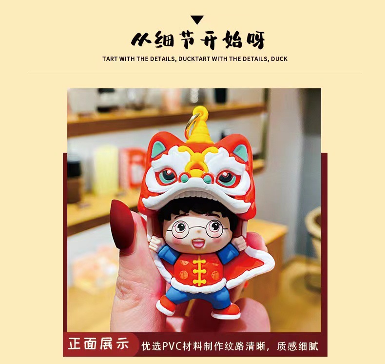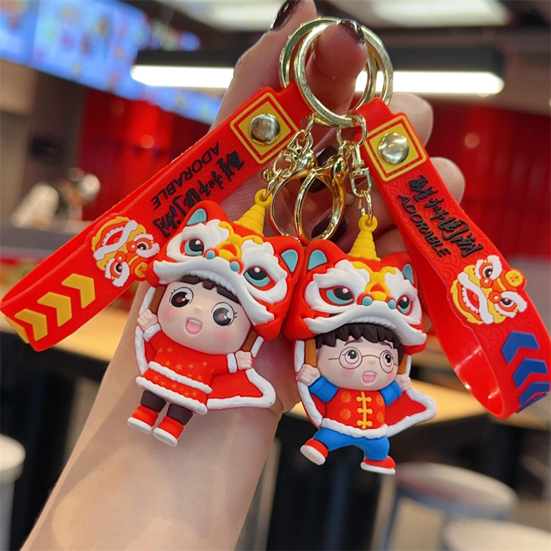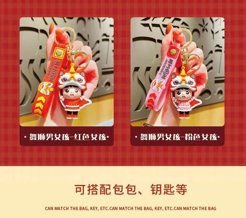 新年国潮舞狮男女孩公仔挂件创意车钥匙扣书包挂饰情侣小礼品批发