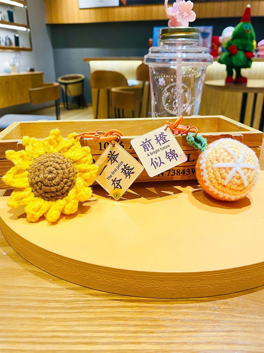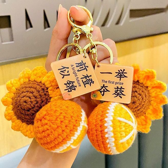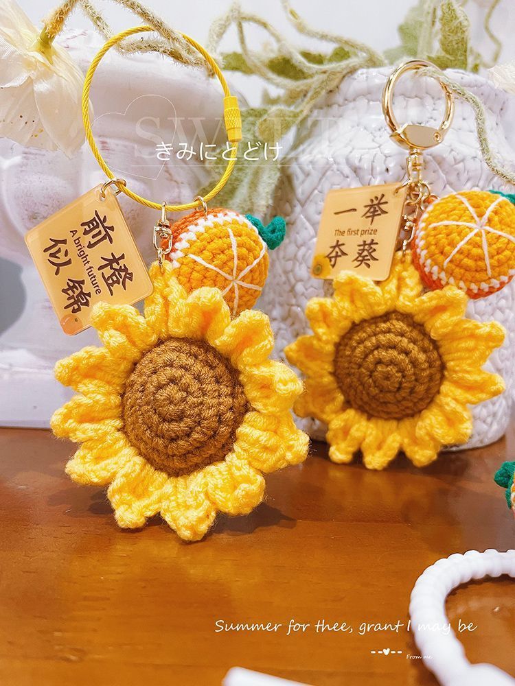 创意钩织向日葵挂件一举夺魁前程似锦批发毕业包包防丢钥匙扣礼物