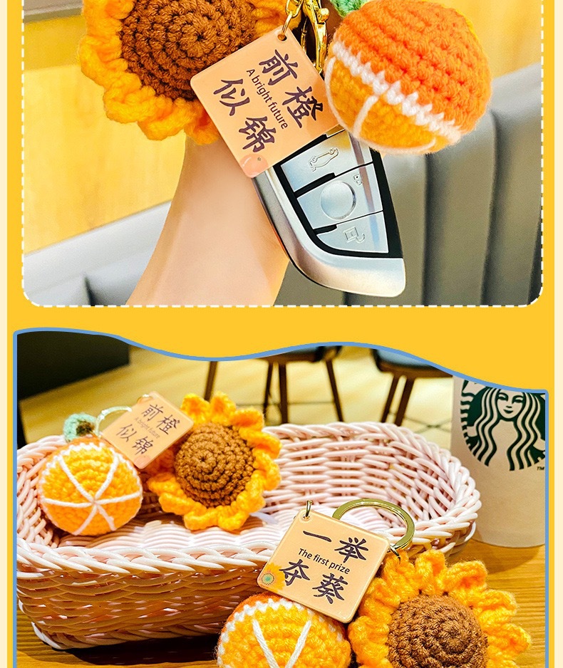高考创意毛绒钩织向日葵钥匙扣一举夺葵学生书包挂件毕业礼品批发