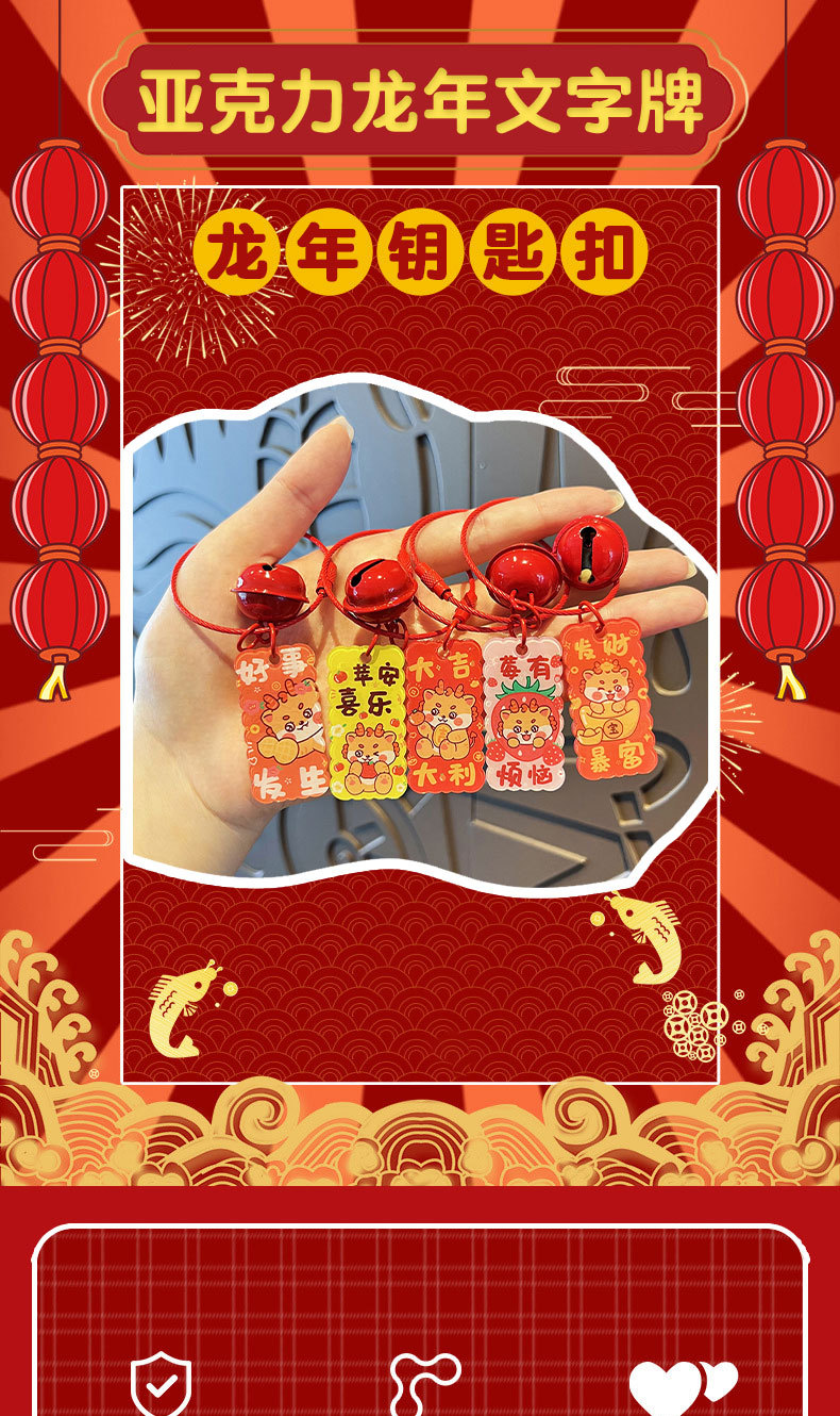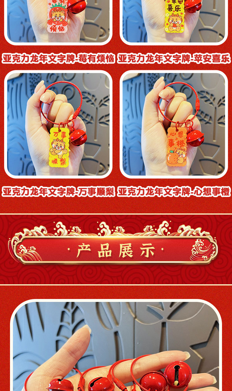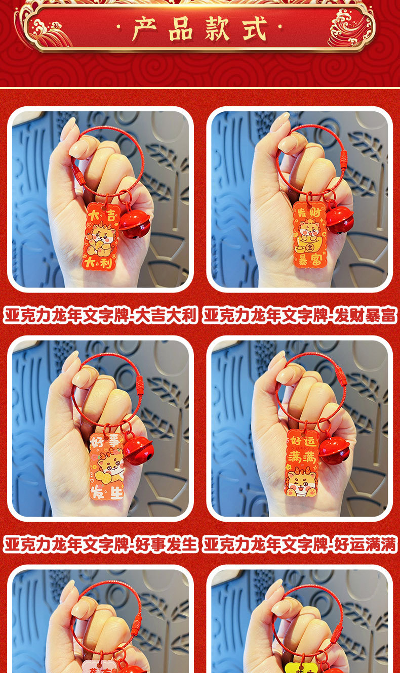 原创亚克力龙年文字吊牌钥匙扣卡通生肖龙吉祥物书包挂件创意礼品