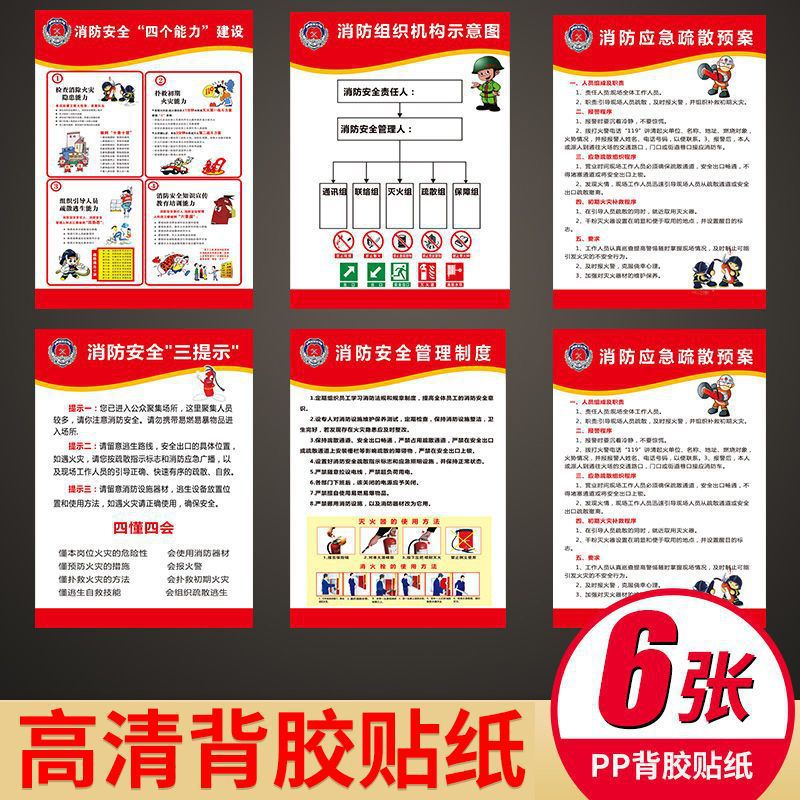 消防四个能力三个提示消防管理制度全套应急疏散预案上墙标识