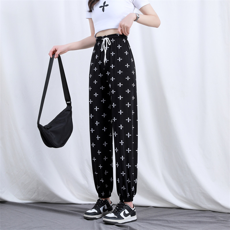 夏天新款2023防蚊裤灯笼裤高腰雪纺冰雪丝束脚裤薄款夏季女裤
