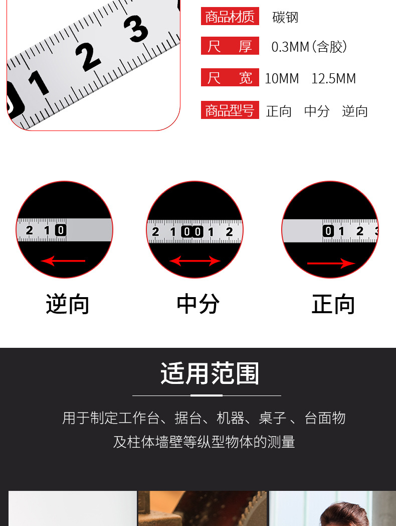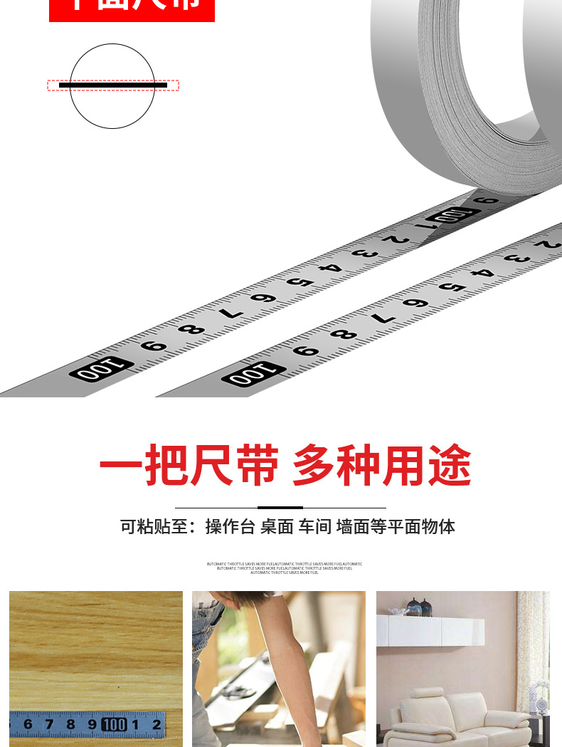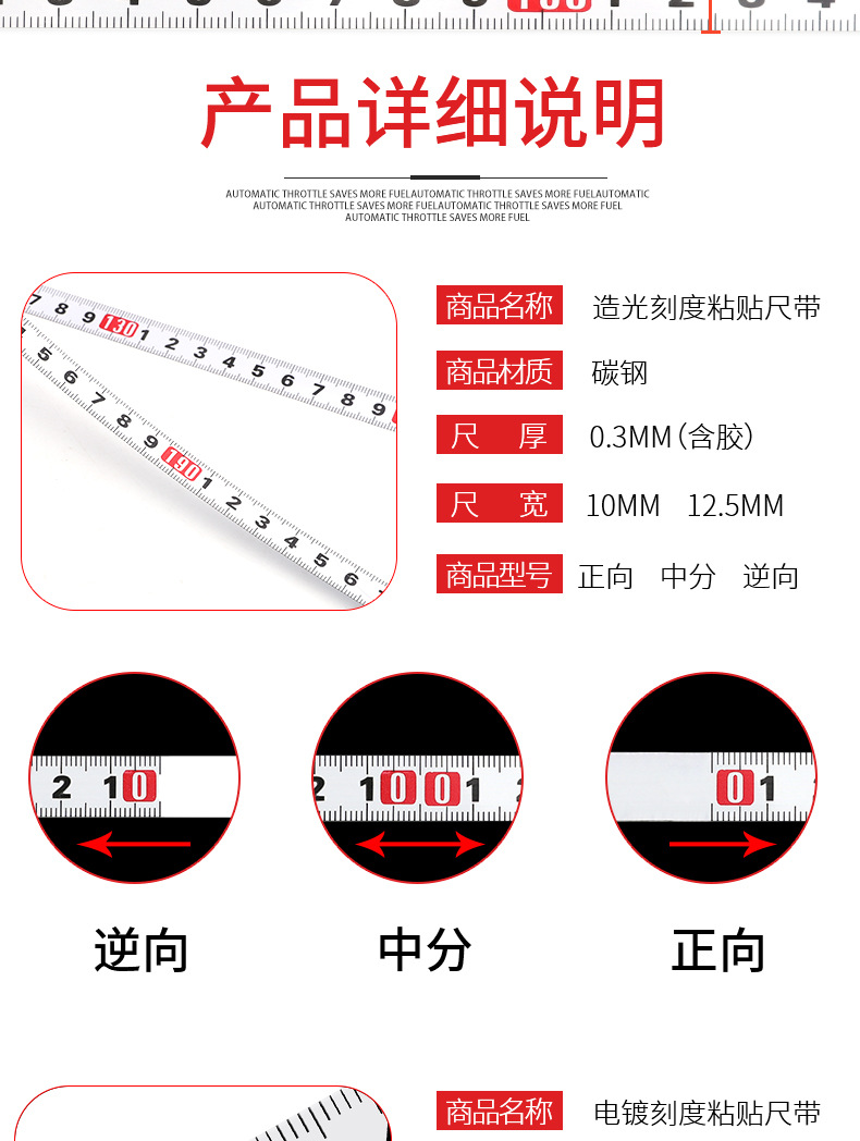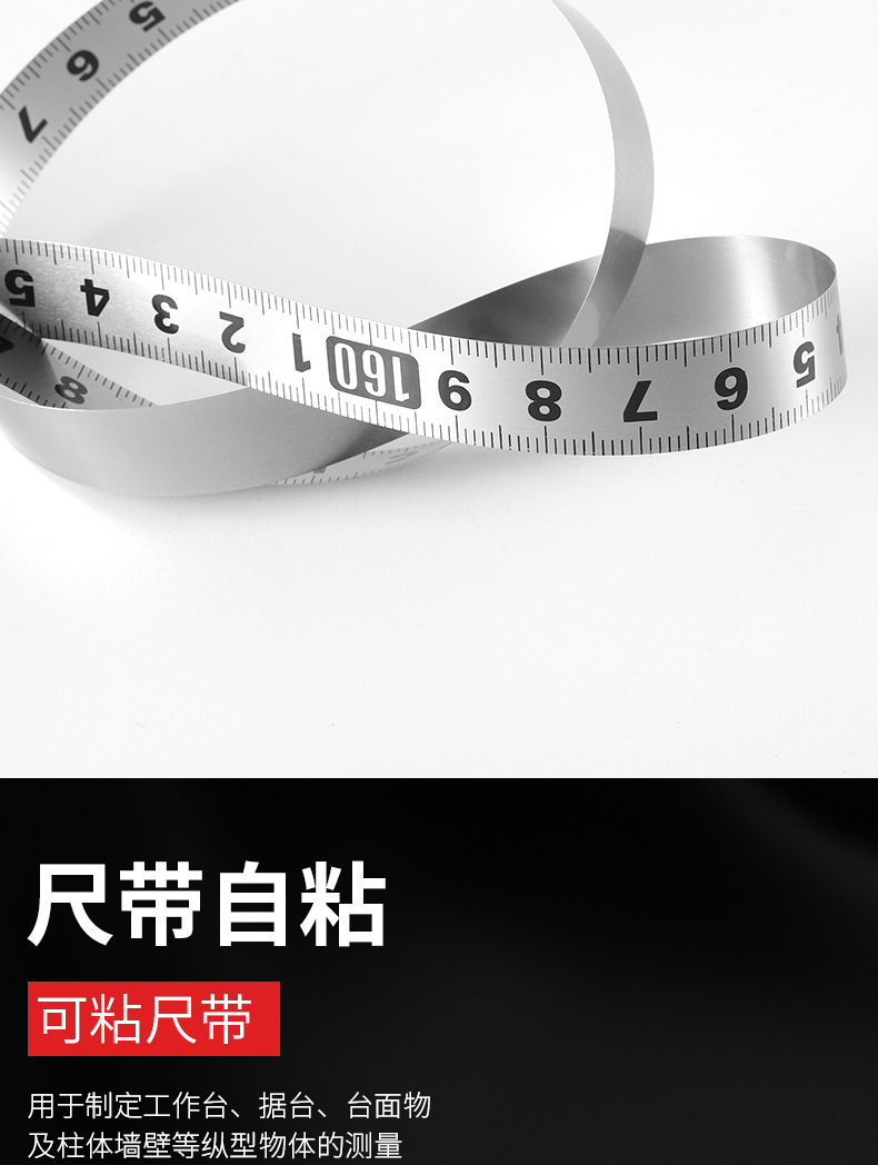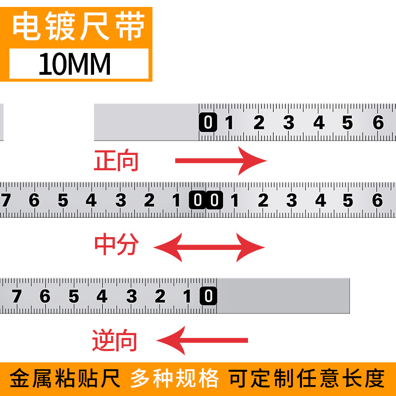 自粘刻度尺条贴 带胶贴纸不锈钢金属可粘贴机械台锯尺子粘性标尺