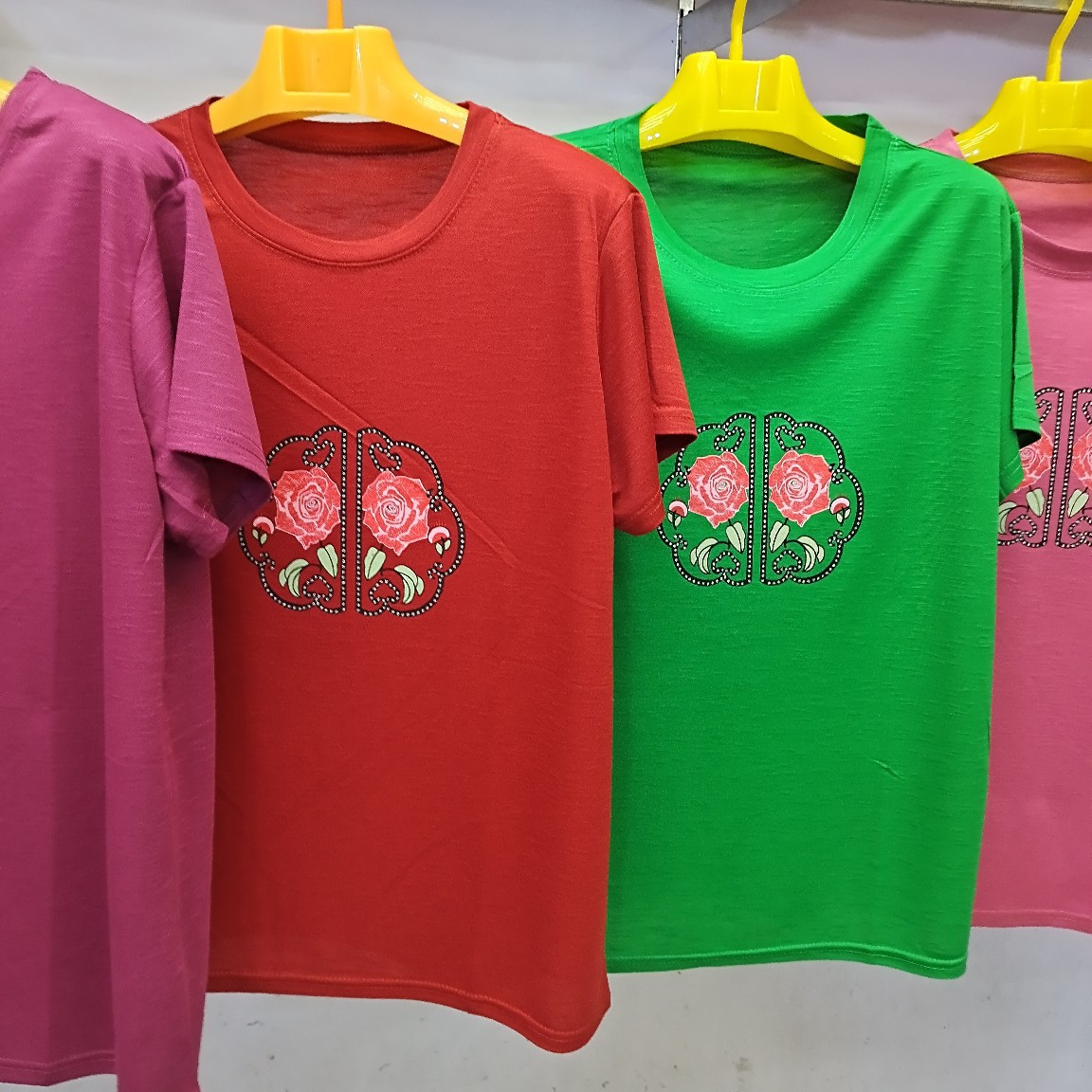 2024新款冰瓷棉气质打底显瘦百搭宽松时尚短袖T恤衫新中式民族风
