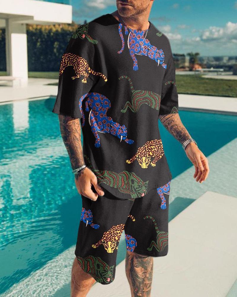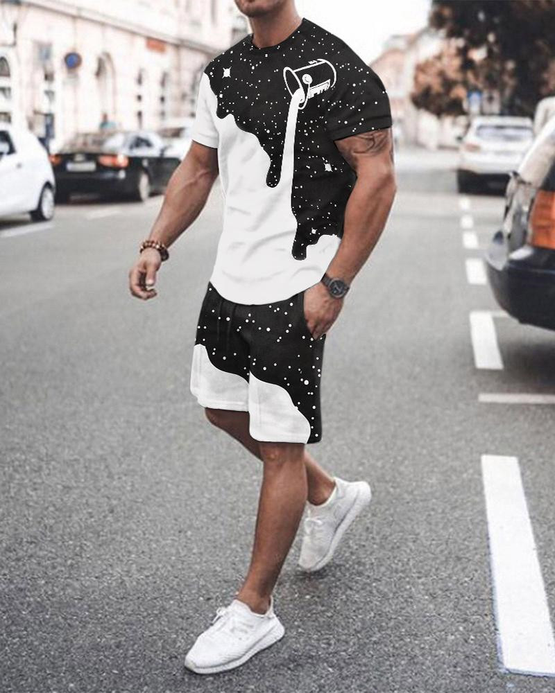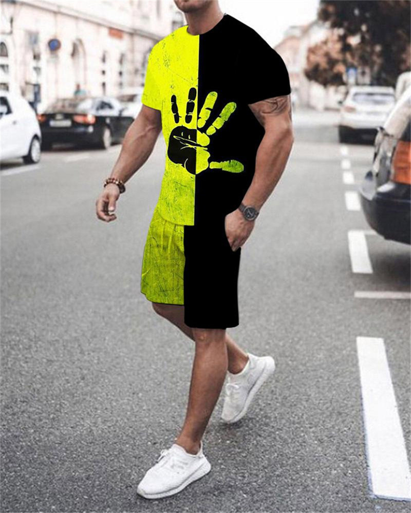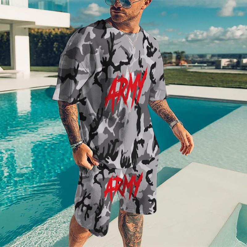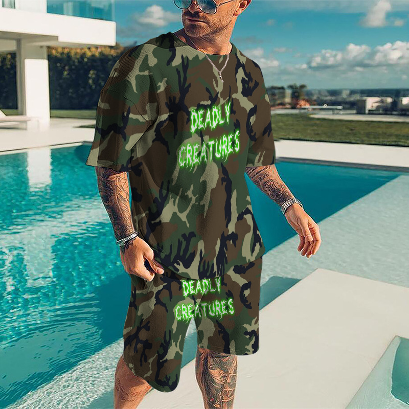 2024跨境外贸新款3D数码印花男T恤运动套装休闲短袖短裤套装沙滩