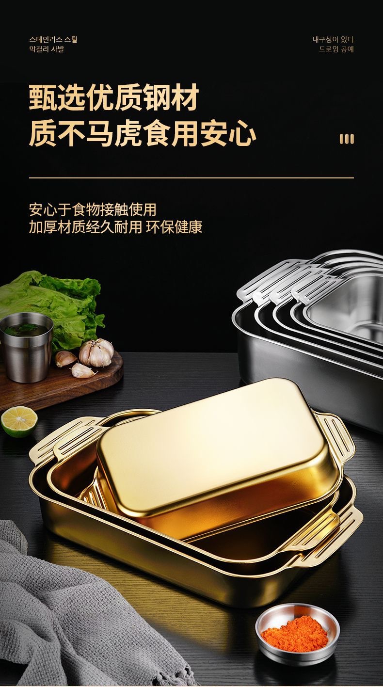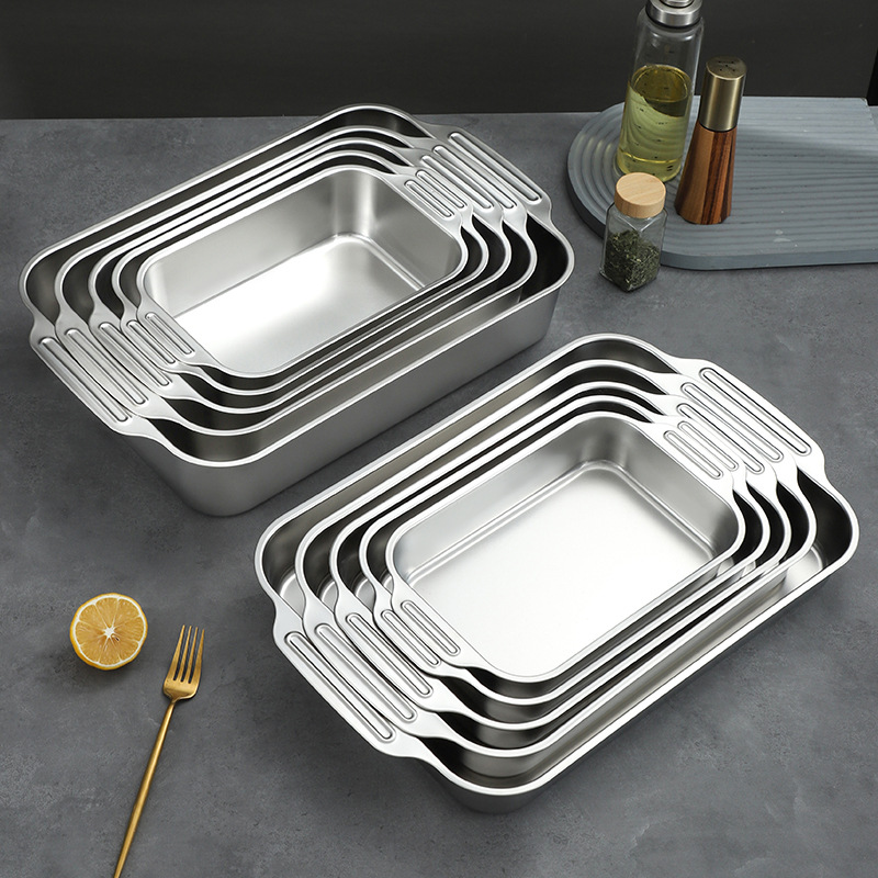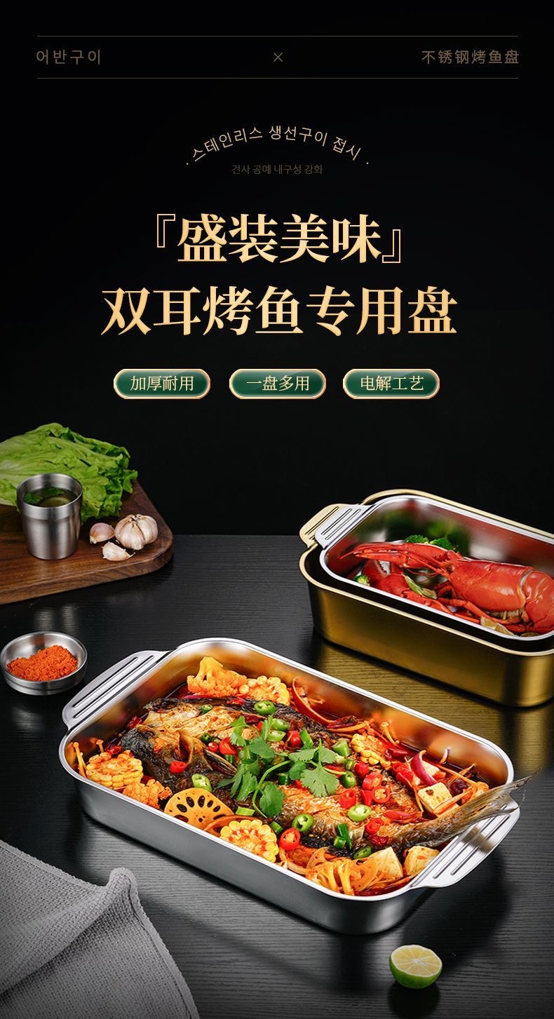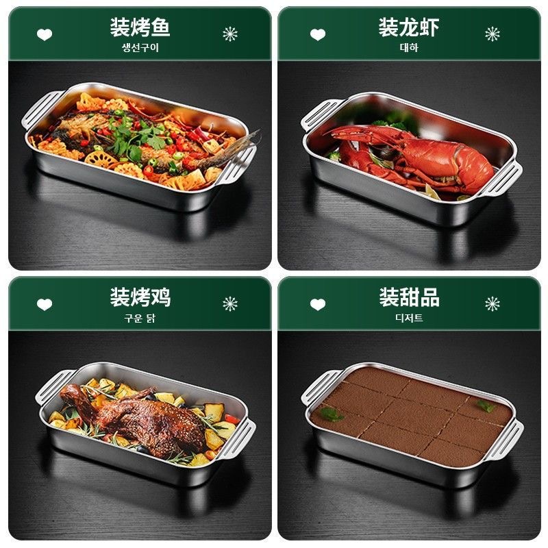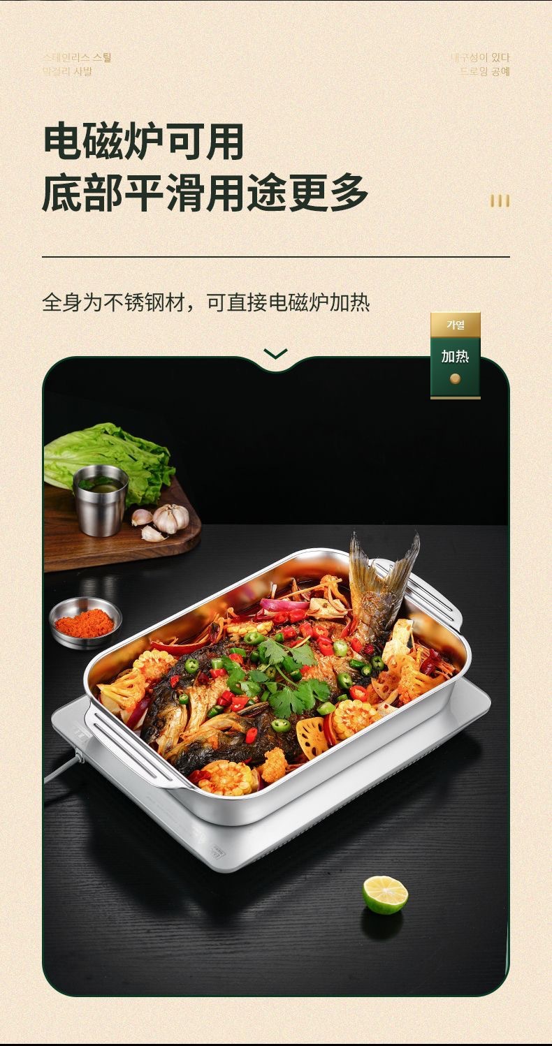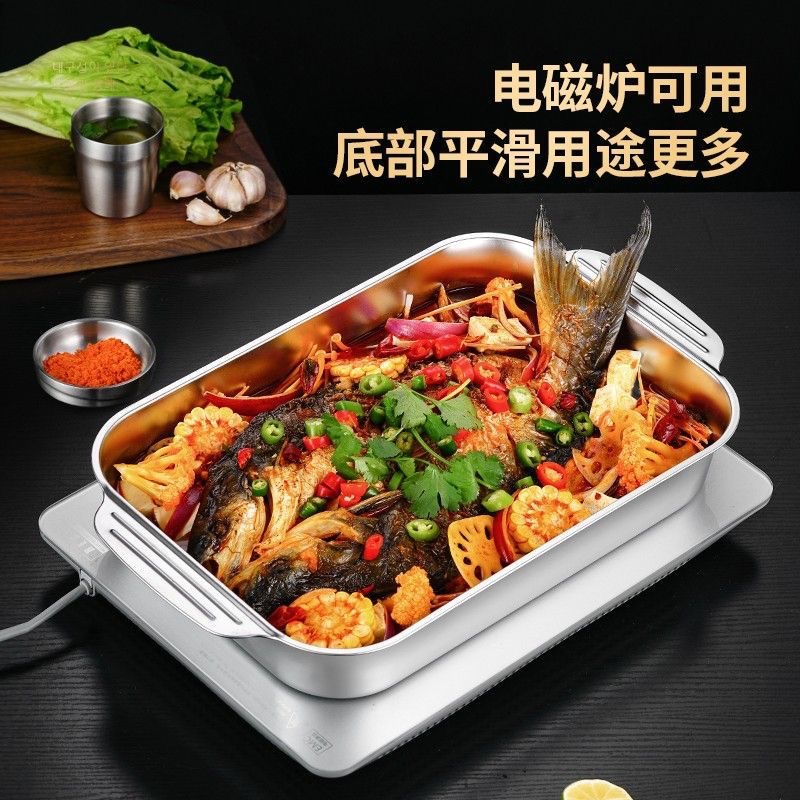 不锈钢烤鱼盘长方形家用深盘电磁炉专用烤鱼托盘商用烧烤盘烤鱼炉