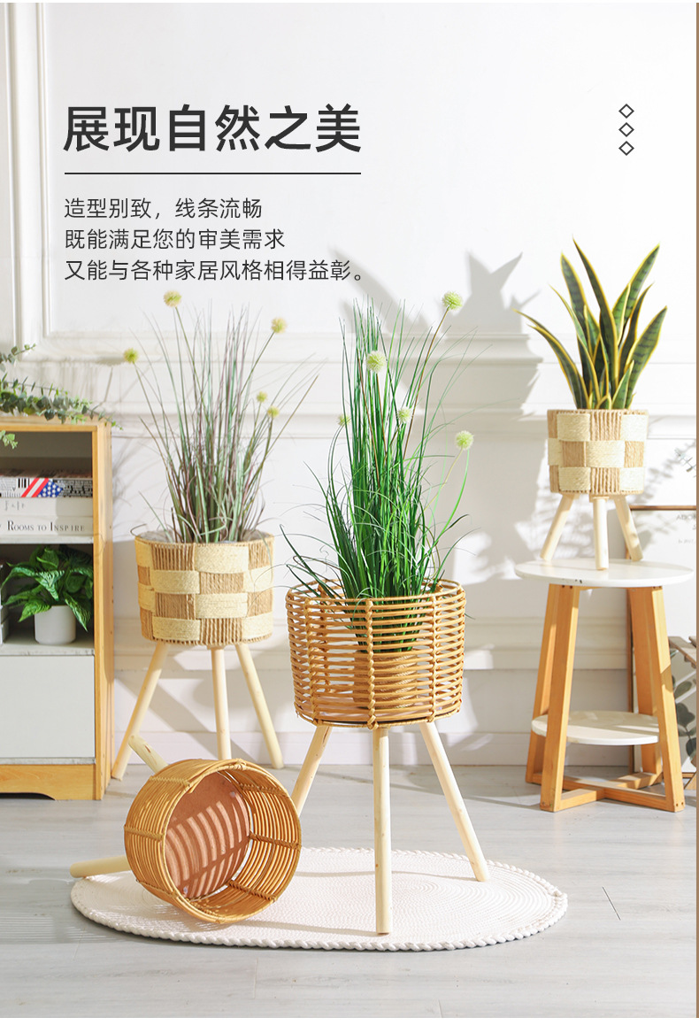欧式花架藤编客厅阳台竹藤花架室内花盆架落地式简约植物架子