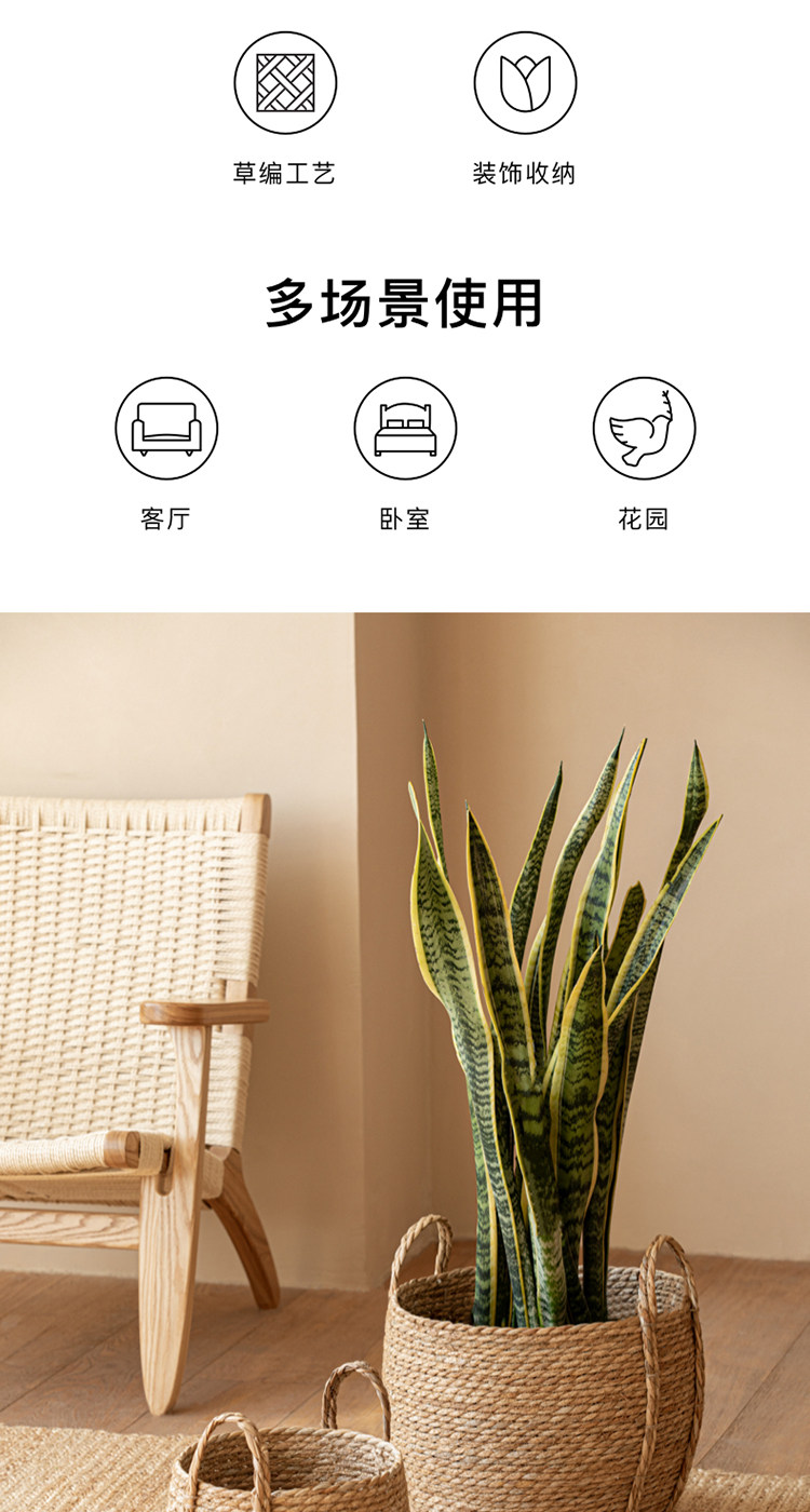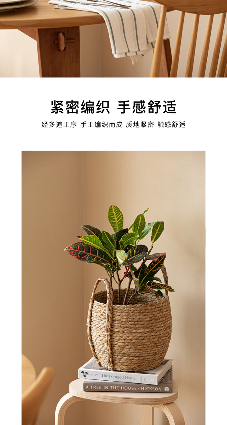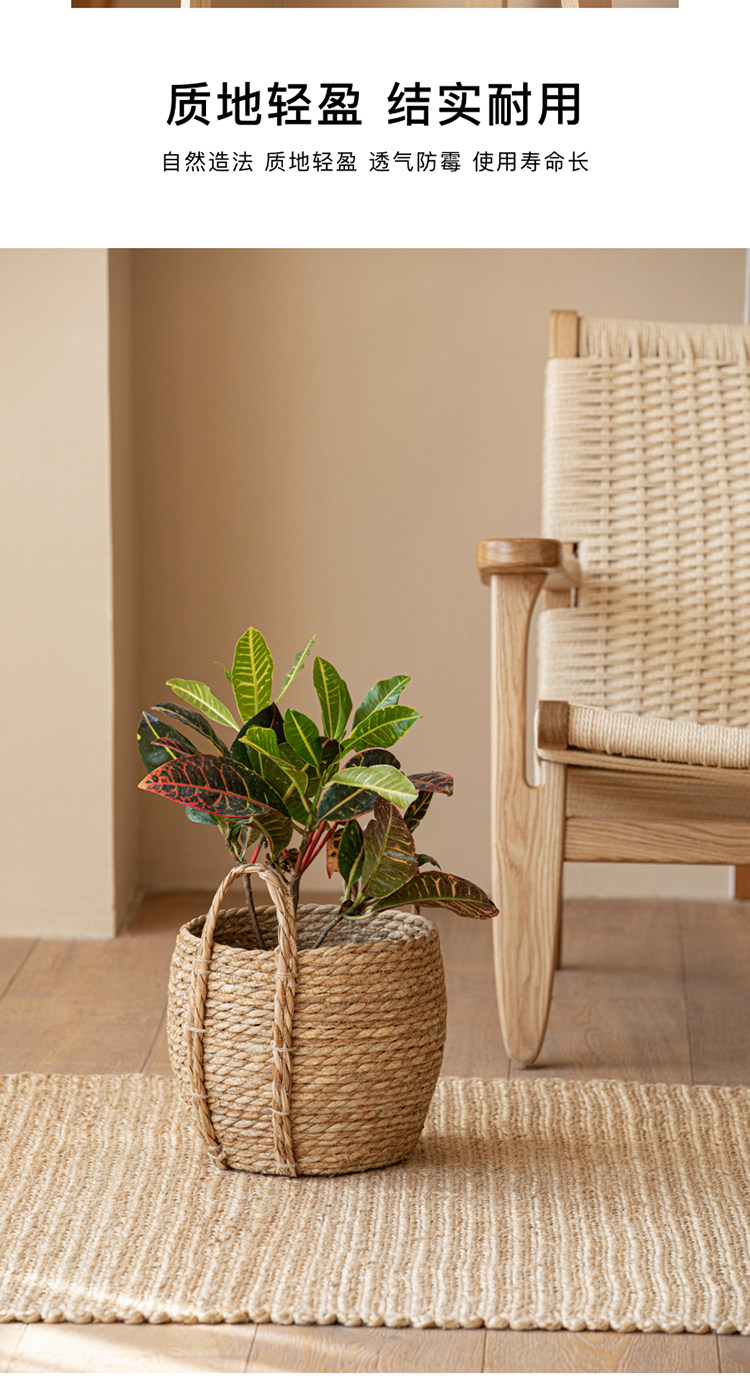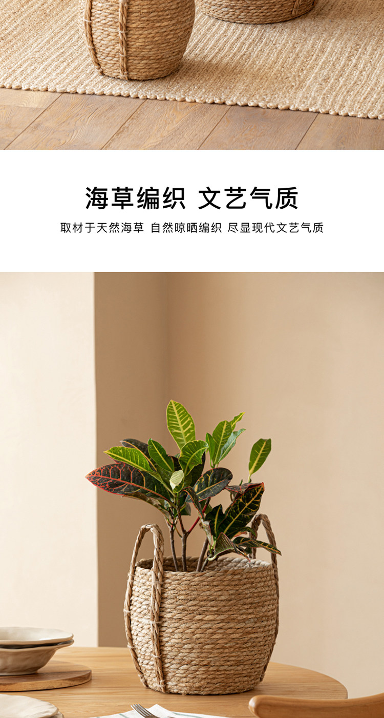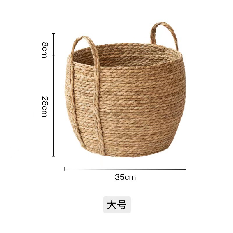 批发田园风海草编织手工花篮带提手藤编装饰花盆大号脏衣筐衣服收