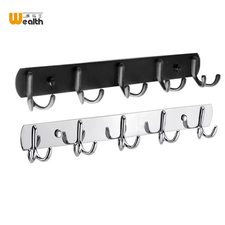 厂家直销黑色不锈钢衣钩 卫生间衣服挂钩 双钩浴室壁挂排钩衣帽钩