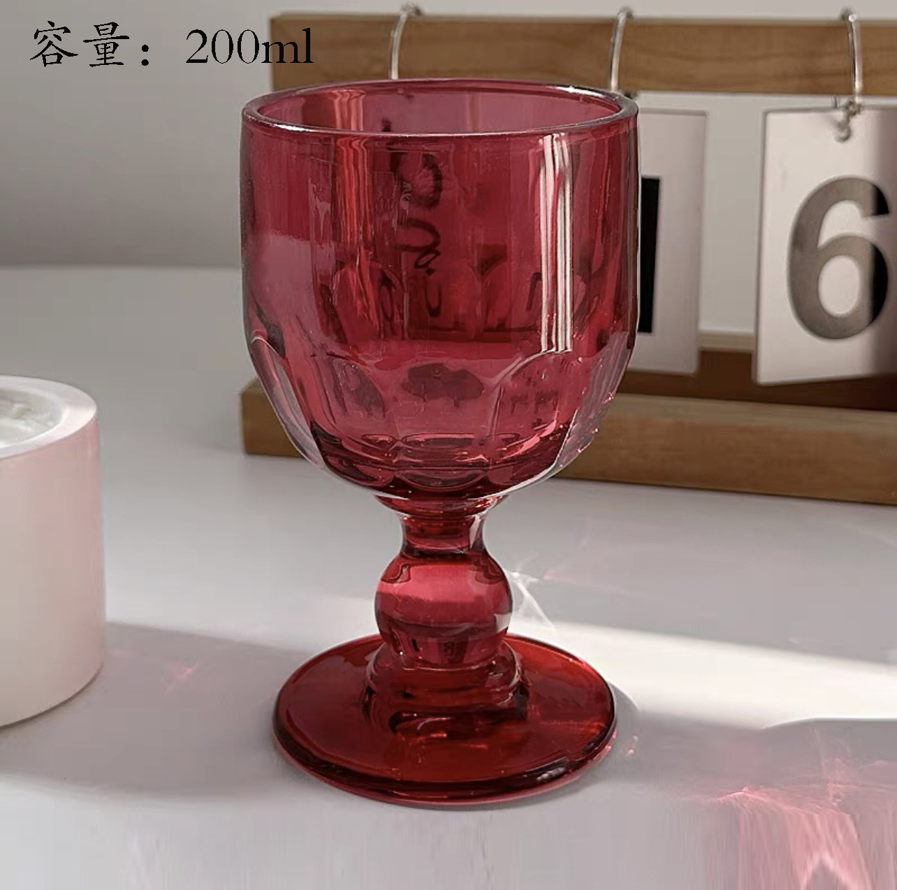 中古酒杯ins彩色饮品杯子小众氛围感玻璃高脚杯子香槟杯葡萄酒杯
