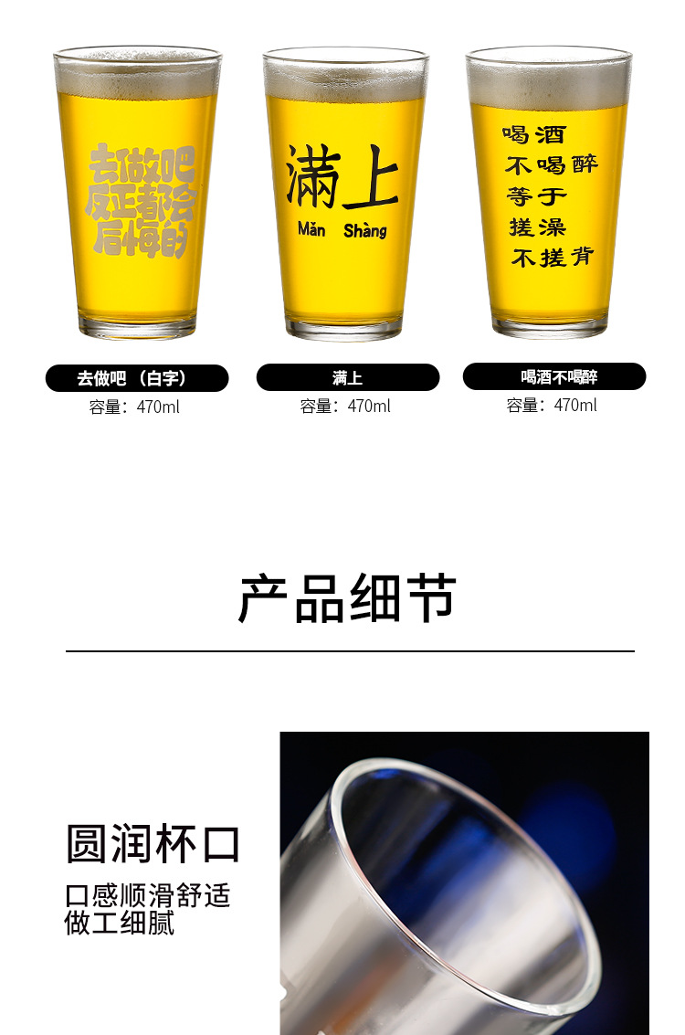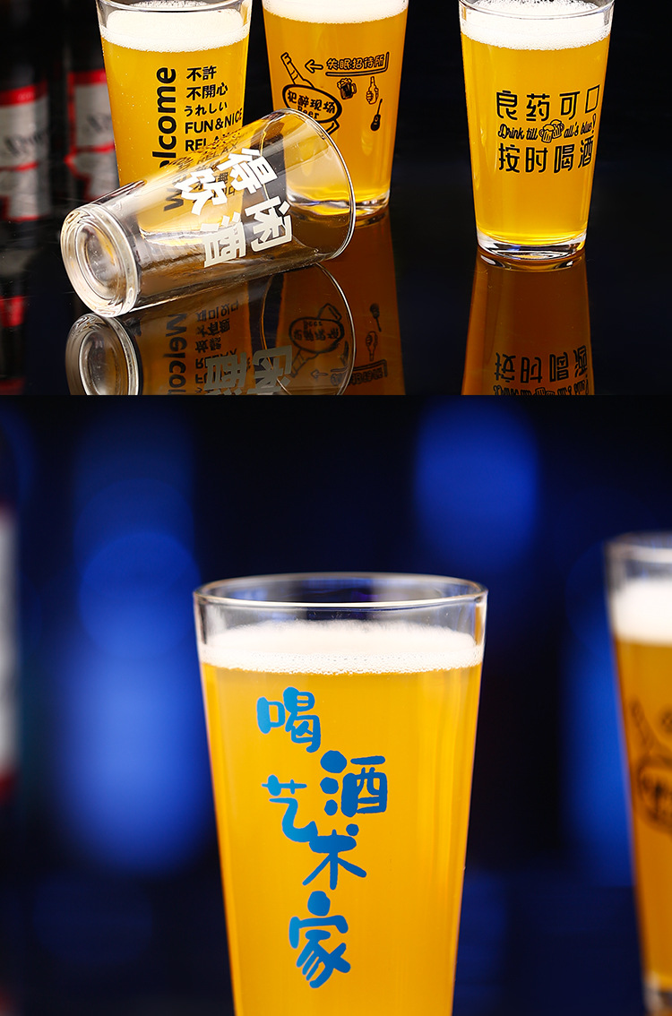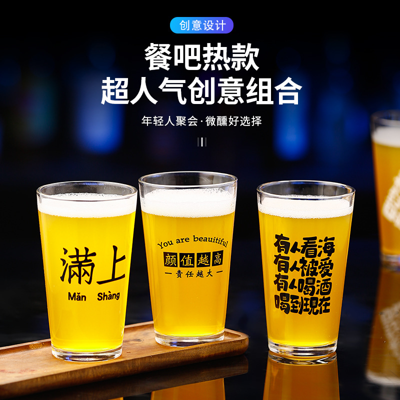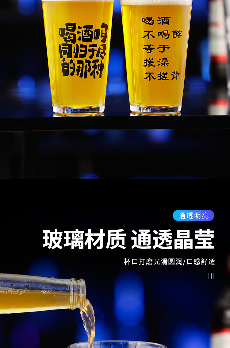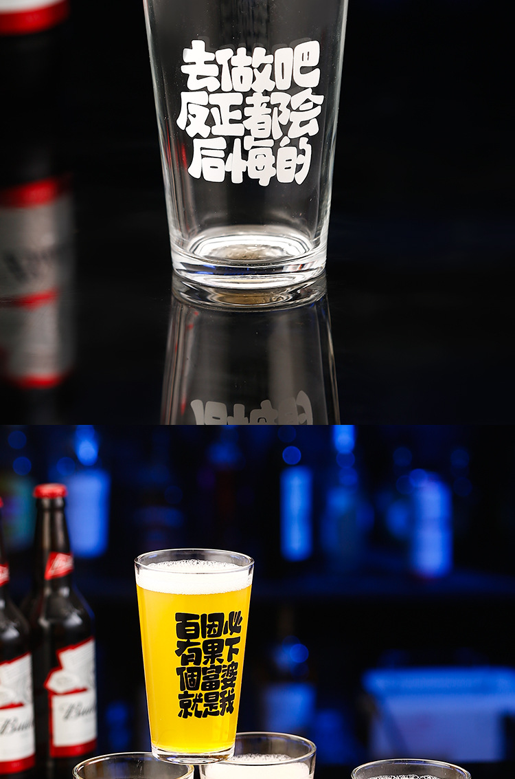 简约啤酒杯文案酒杯刻字logo创意酒馆商用网红打卡脱品精酿酒杯