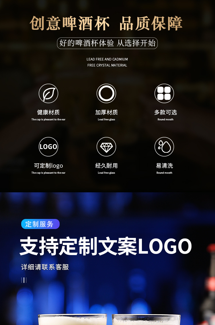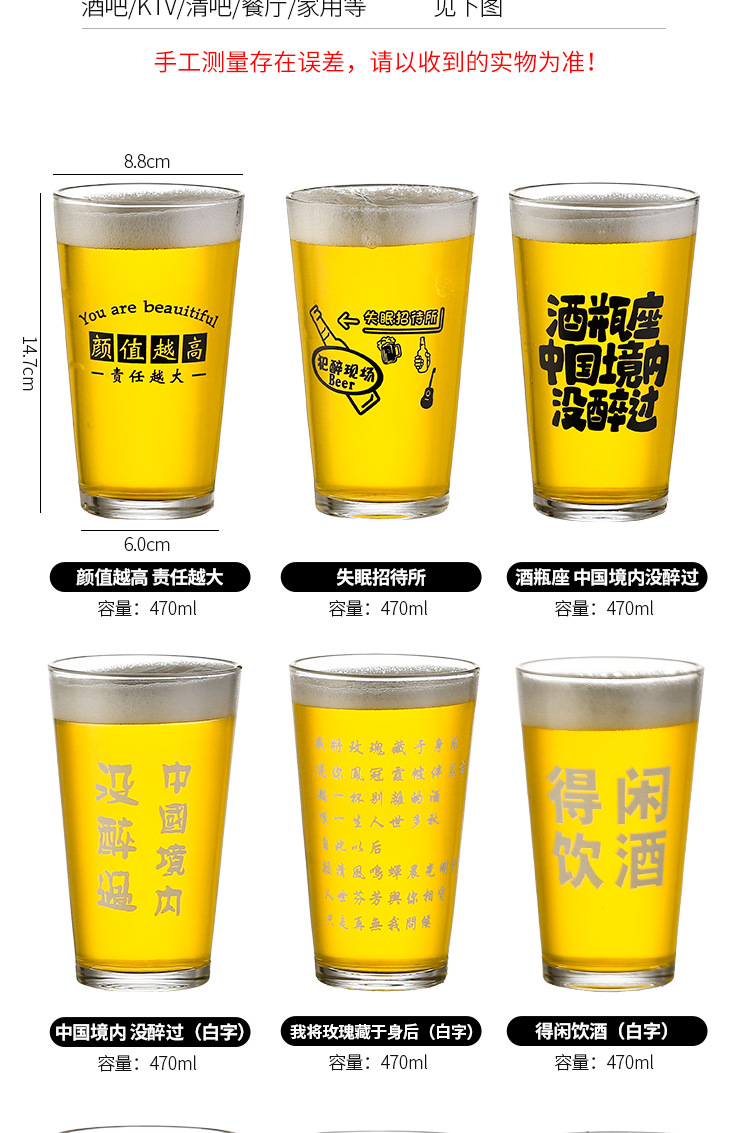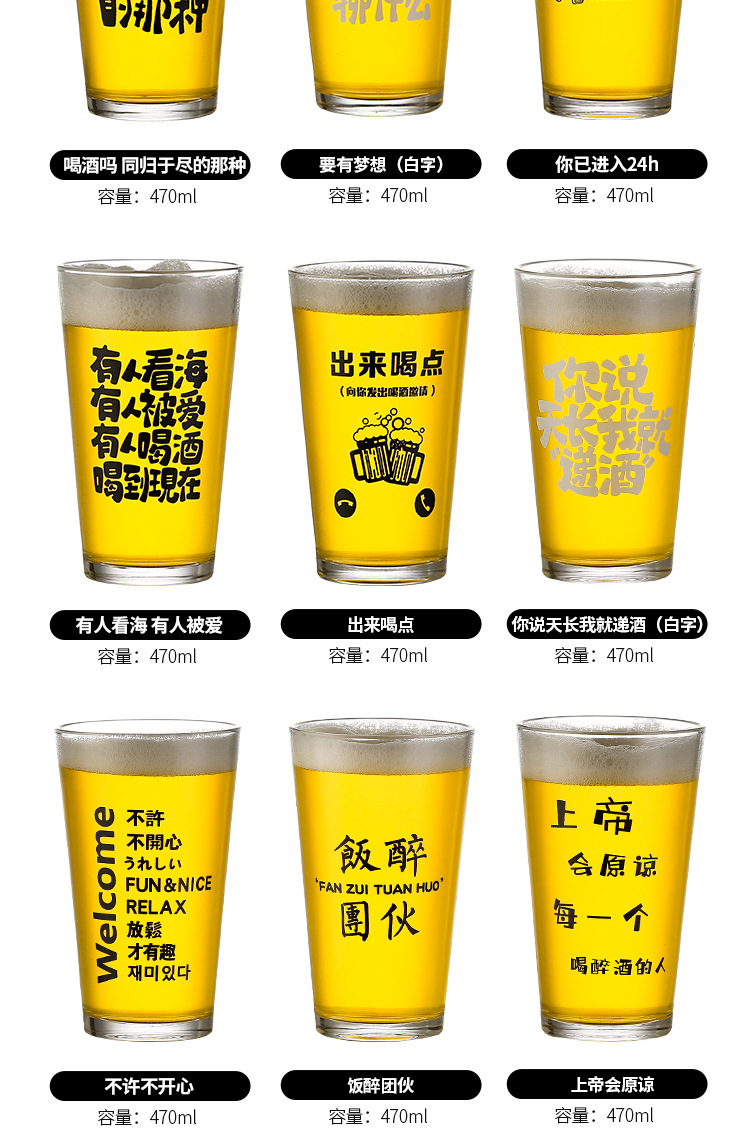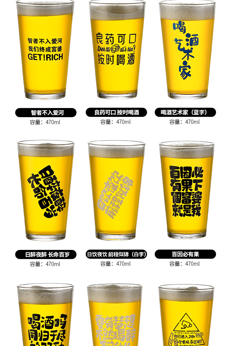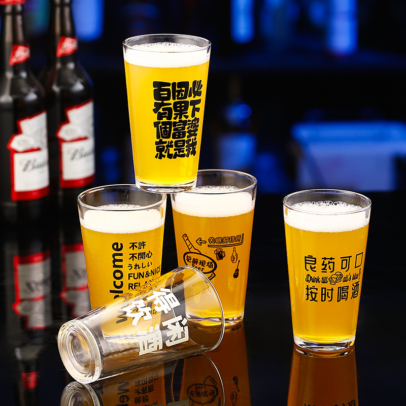 简约啤酒杯文案酒杯刻字logo创意酒馆商用网红打卡脱品精酿酒杯