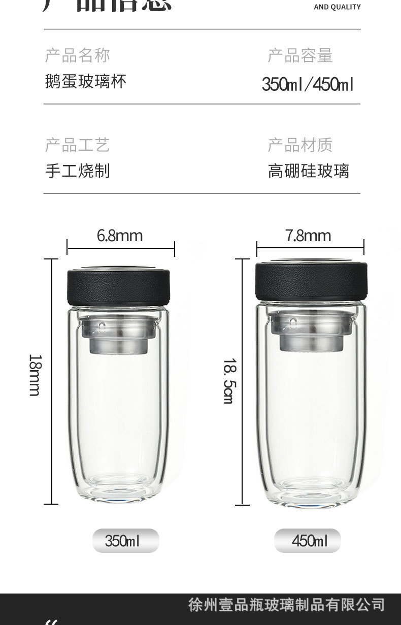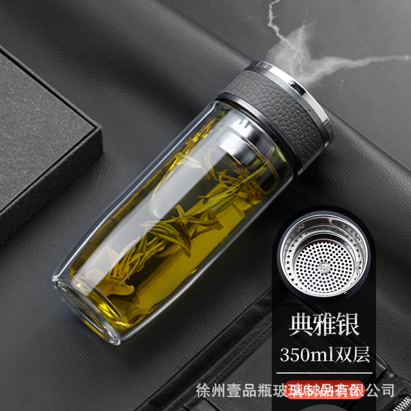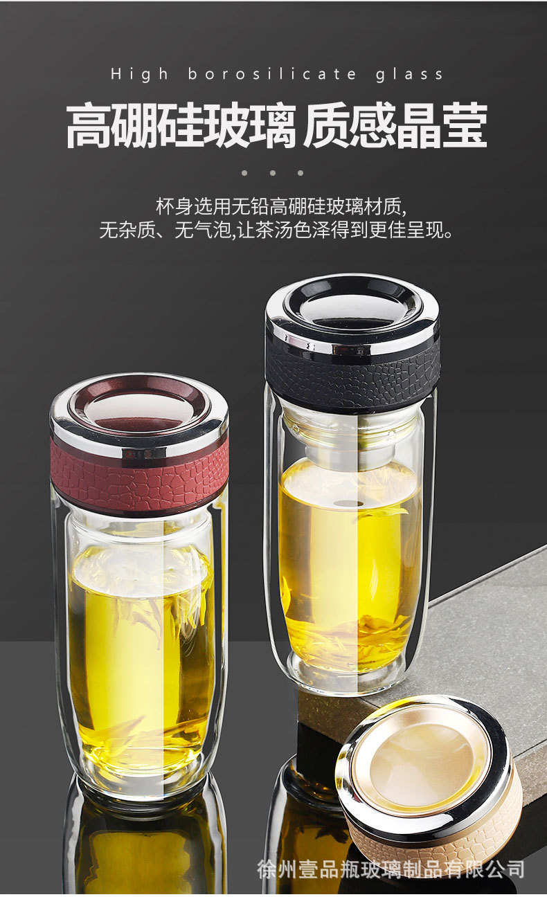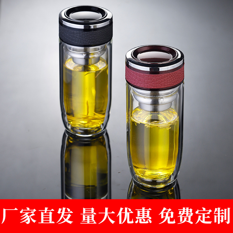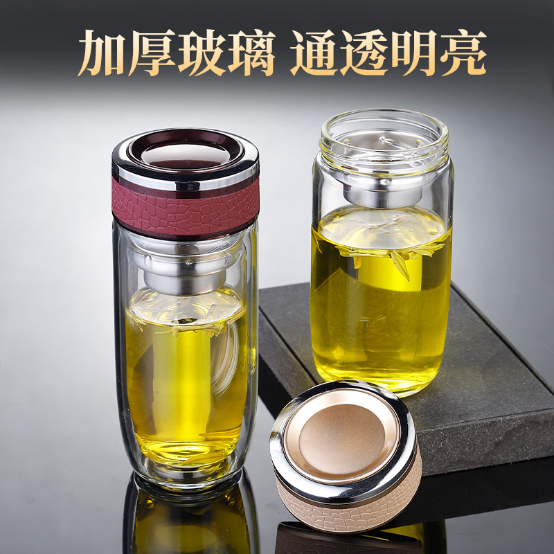 双层玻璃杯耐高温茶水分离防爆鹅蛋杯高硼硅茶杯车载礼品水杯批发
