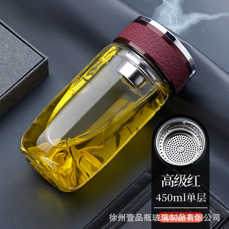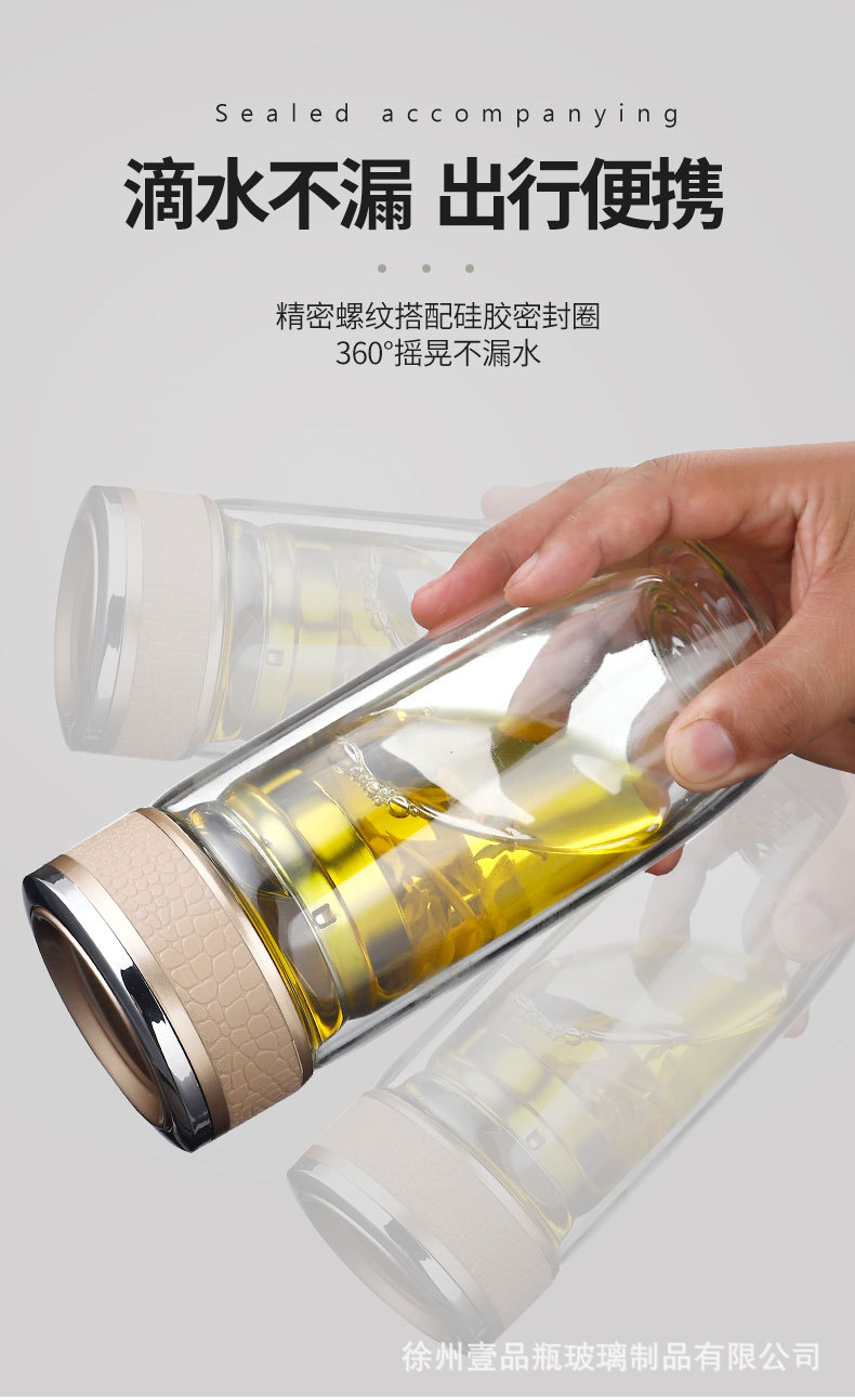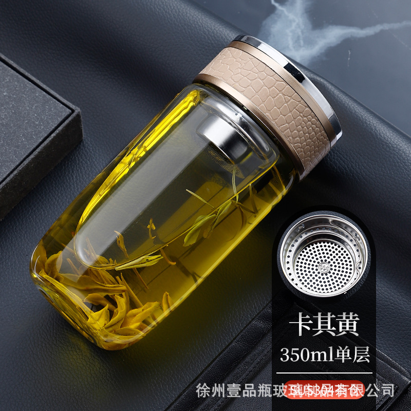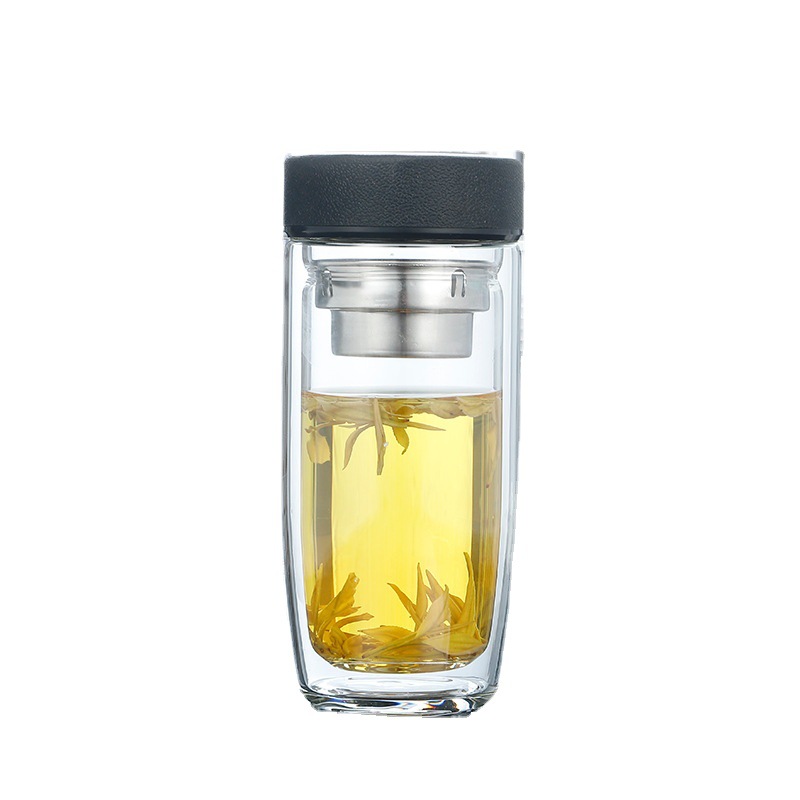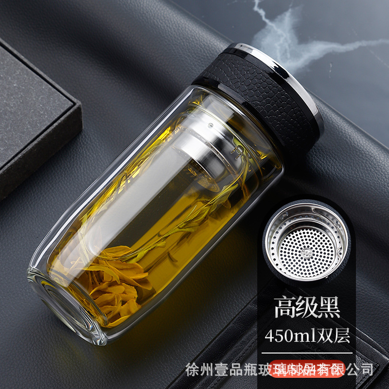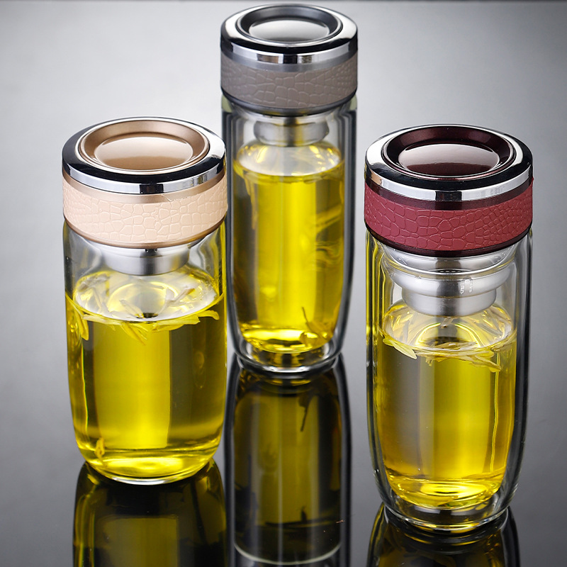 双层玻璃杯耐高温茶水分离防爆鹅蛋杯高硼硅茶杯车载礼品水杯批发