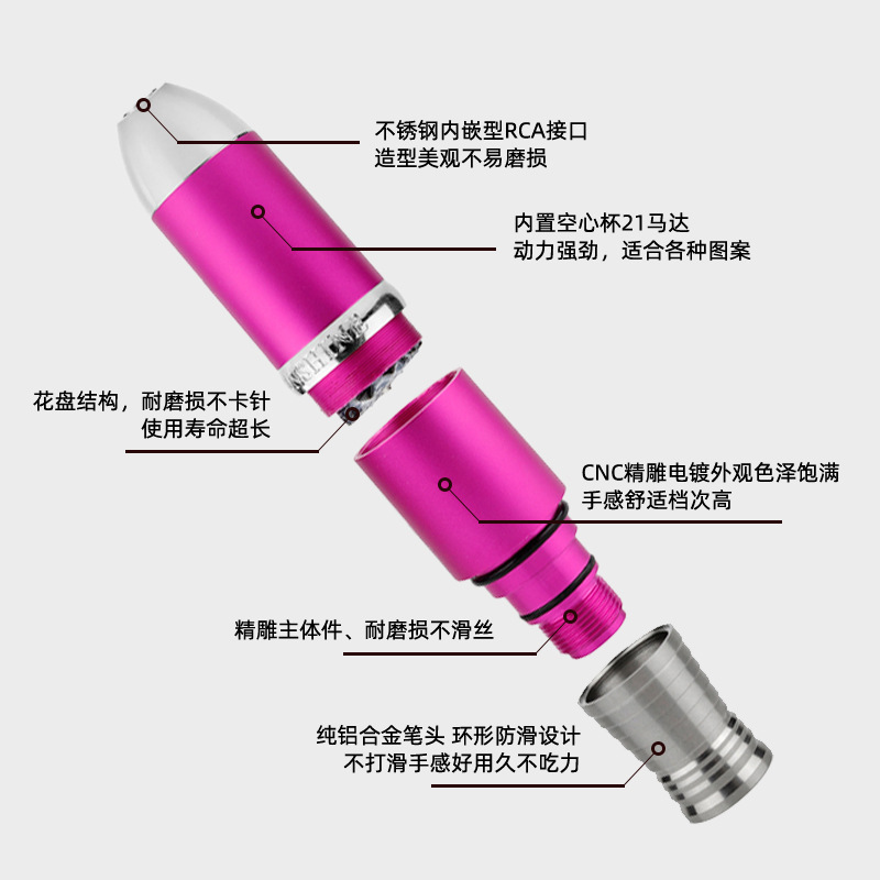 7.采用二代纹身笔结构,拆装方便,使用寿命长,不易磨损,客户可以自己后期拆装维护