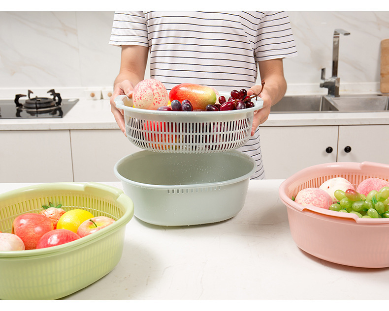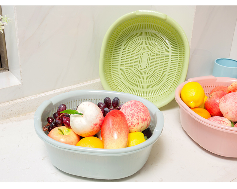 双层沥水篮多功能方形大号家用厨房清洗收纳水果篮塑料洗菜果篮子