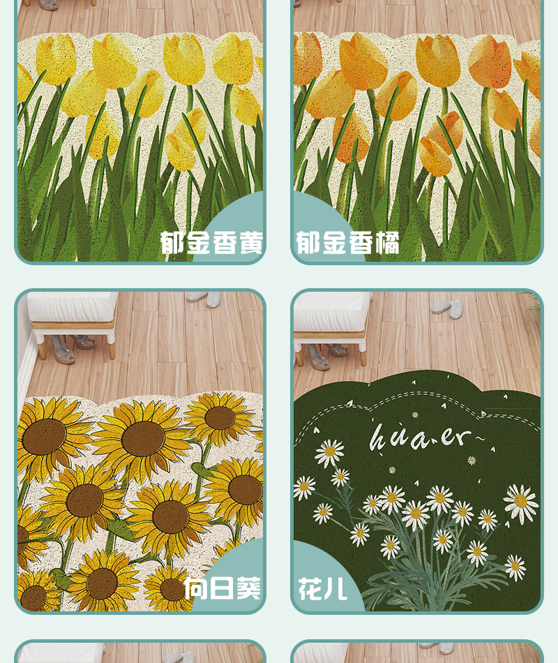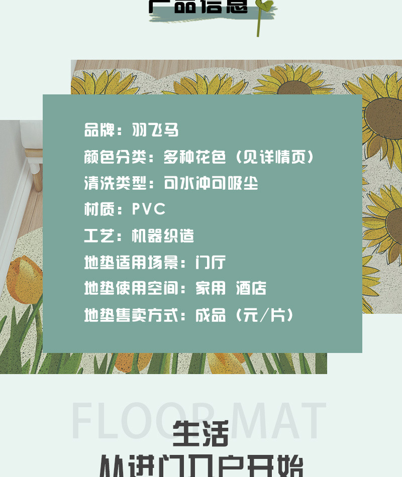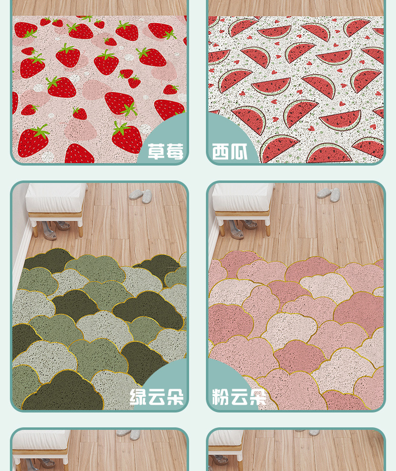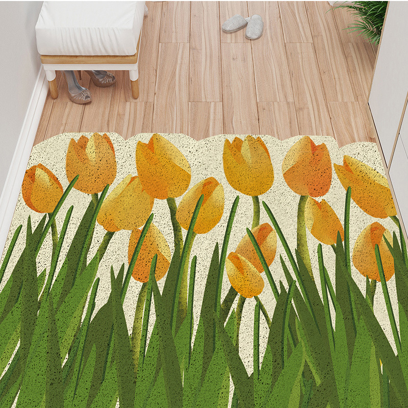 卡通印花丝圈地垫防滑可水洗客厅入户门垫可裁剪简约风一件代发