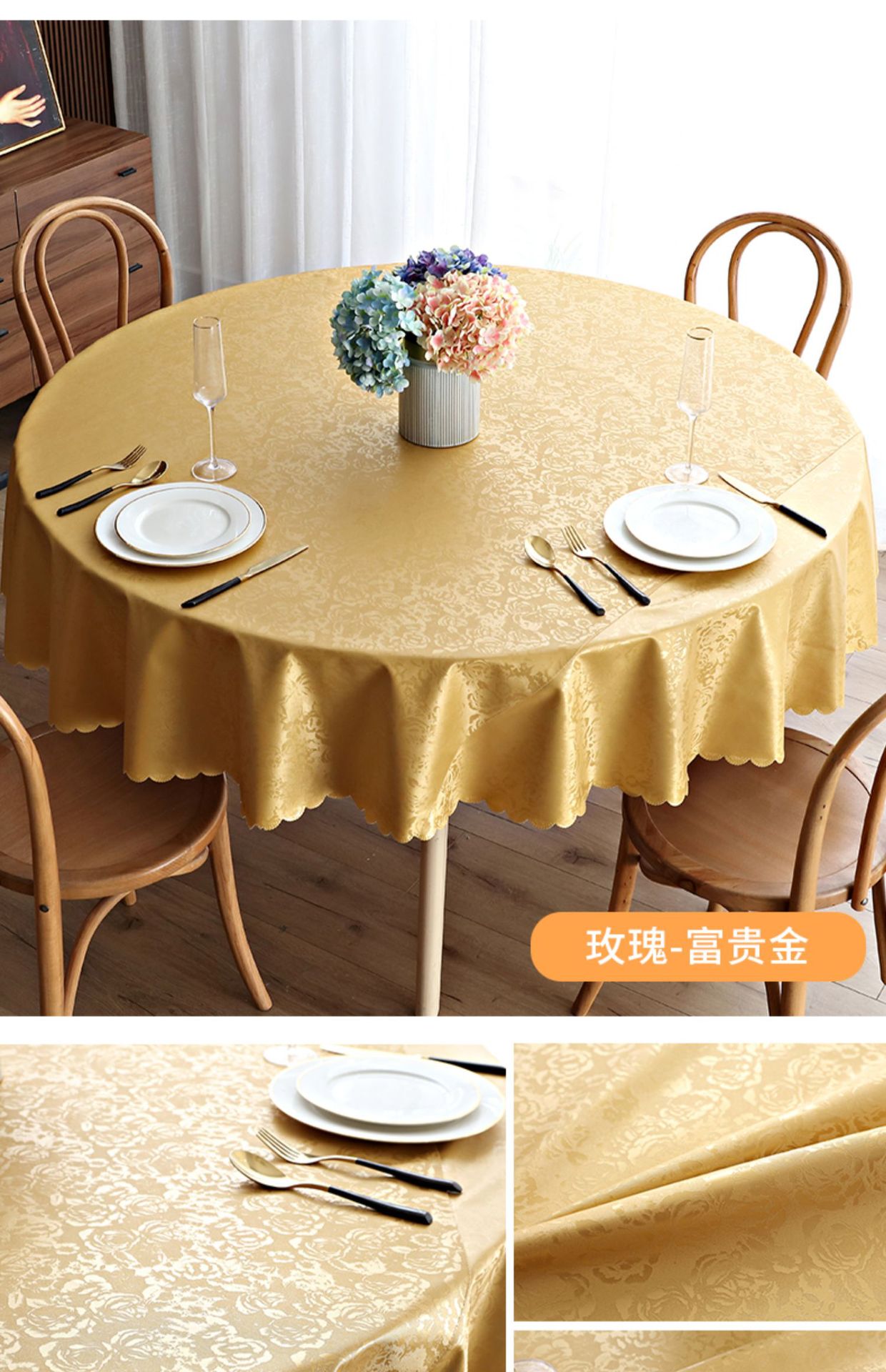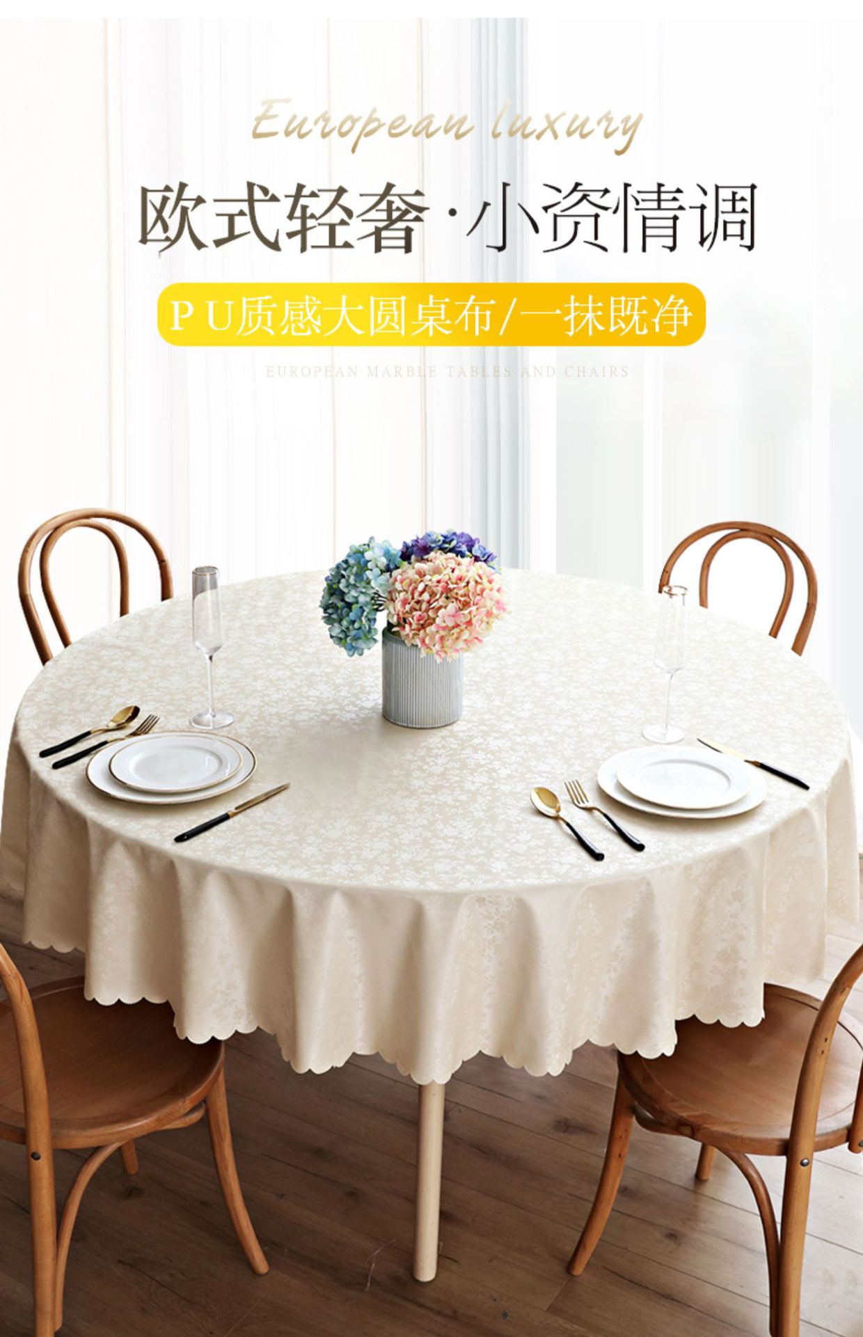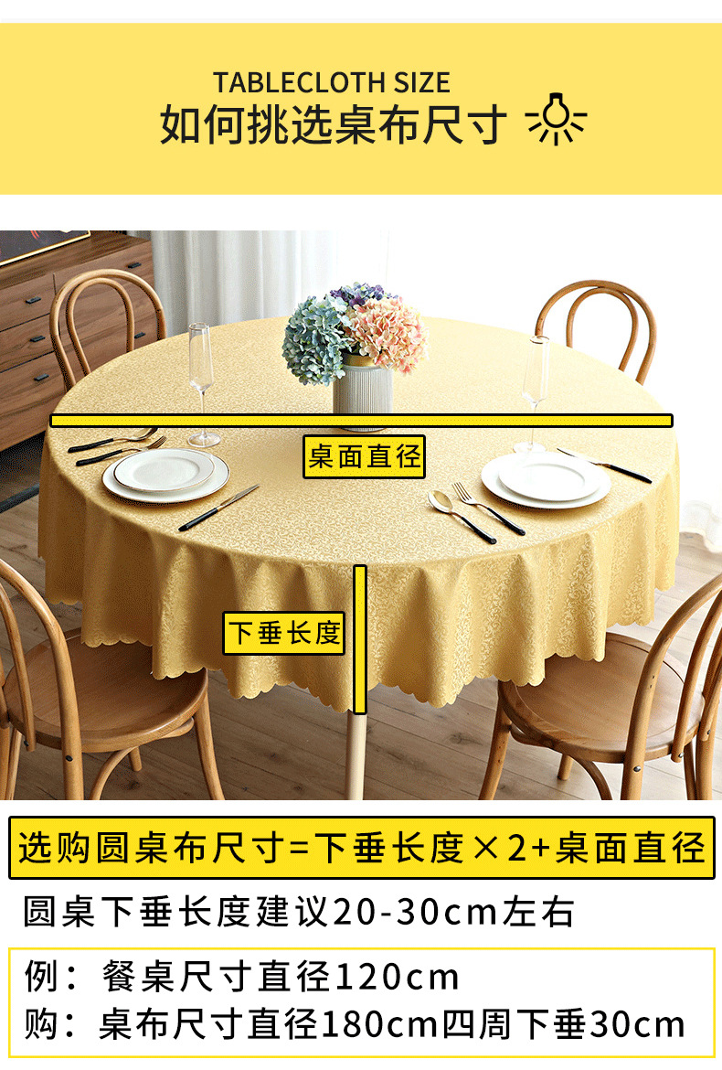 跨境防水防油酒店桌布家用圆形大圆桌台布布艺免洗饭店桌布批发