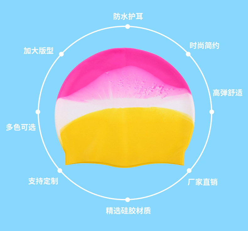 定制高弹力泳帽男女成人款不勒头专业游泳帽防滑护耳混色硅胶泳帽