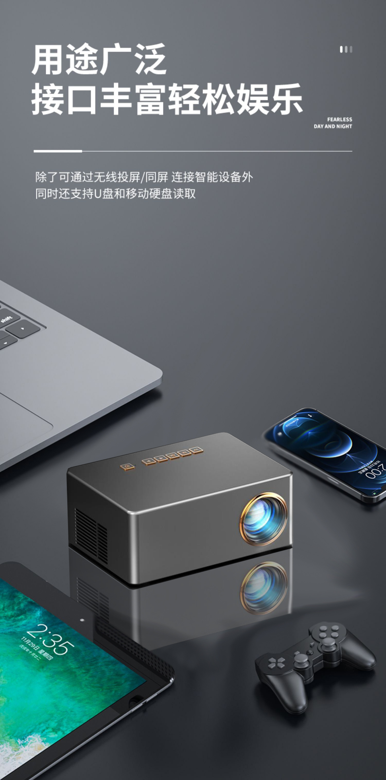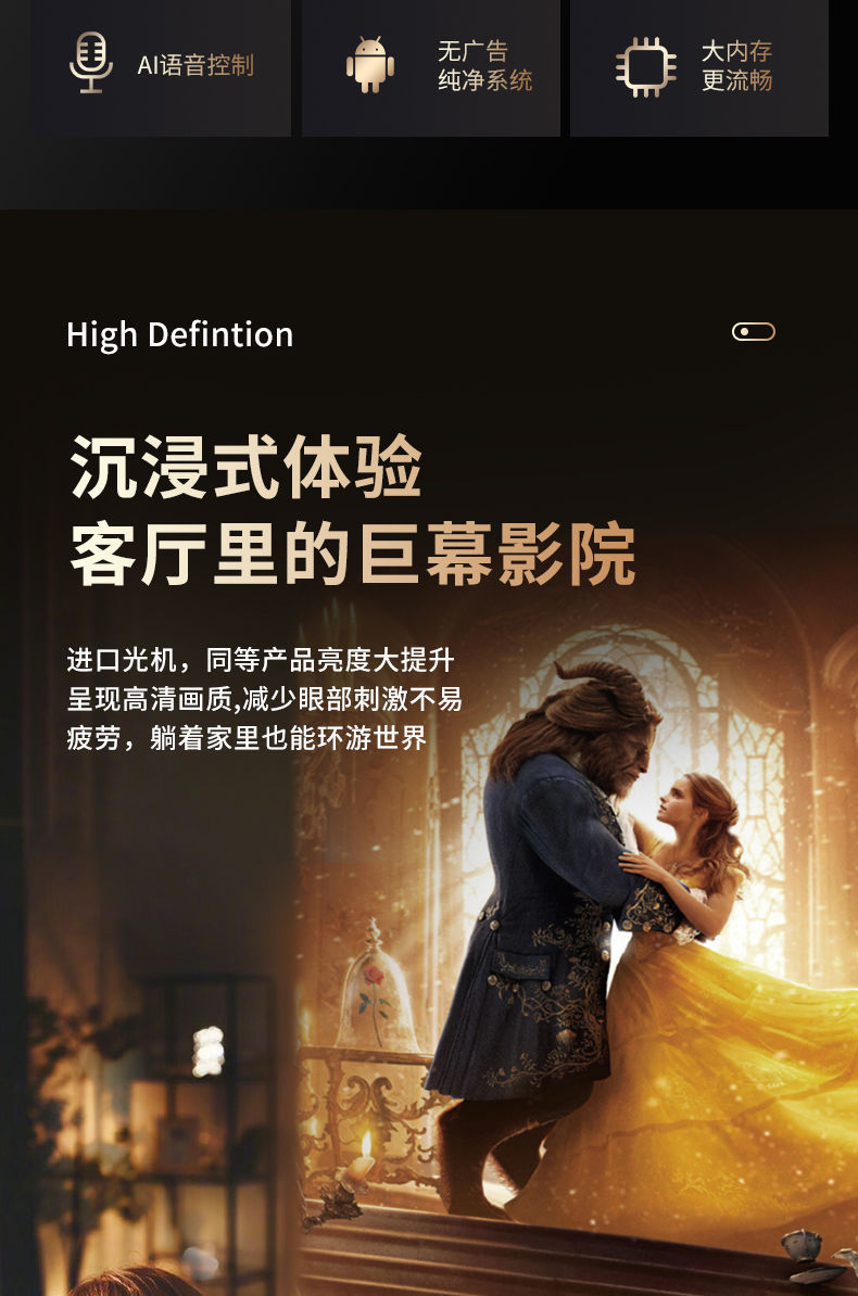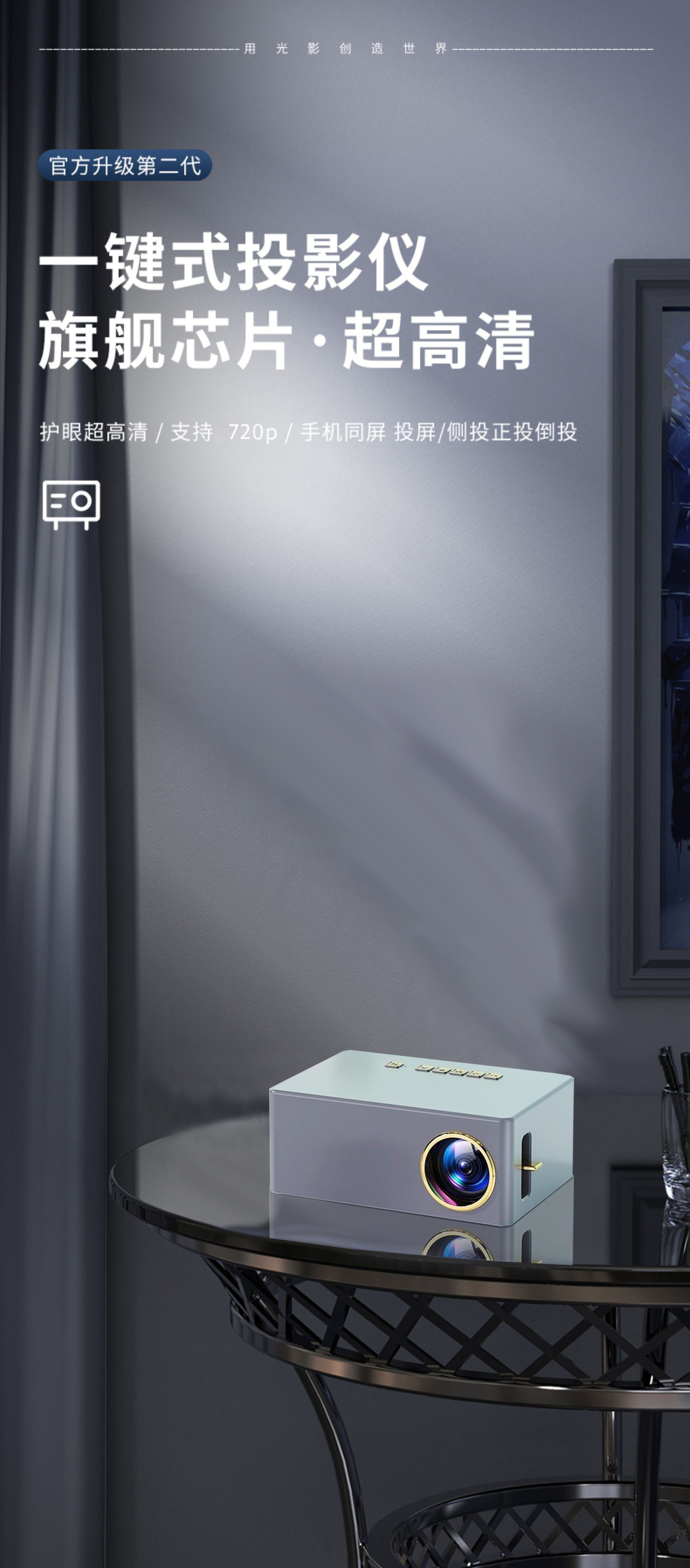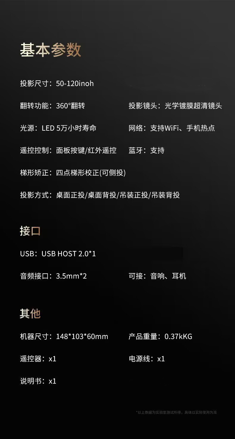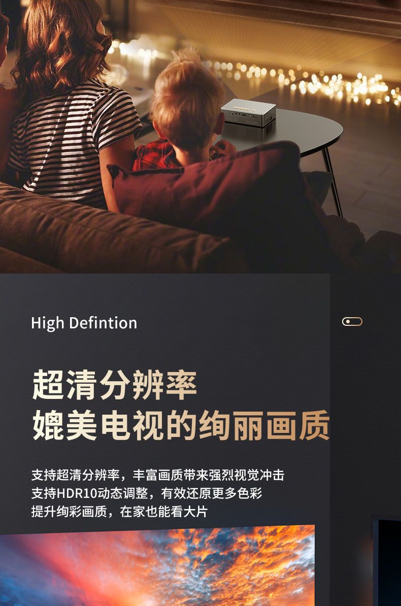 YD10 超清投影仪家用卧室手机投屏一体机投墙小型投影仪Projector