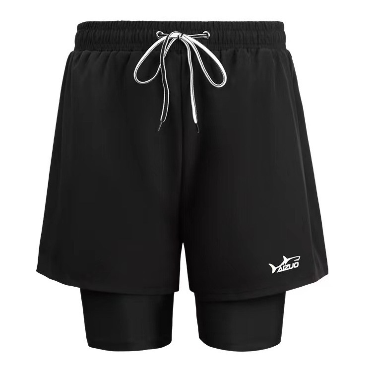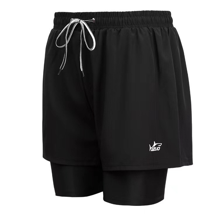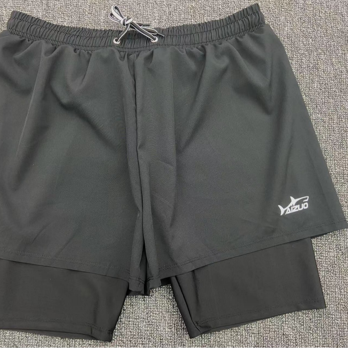 时尚男士双层防尴尬纯色进店速干泳裤 舒适运动男士短游泳裤