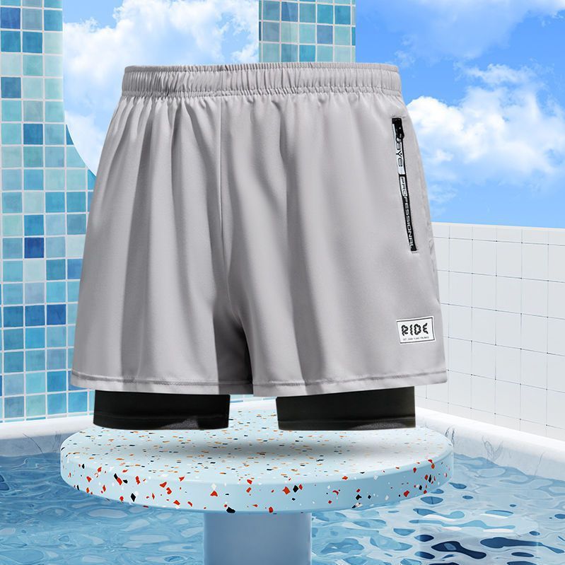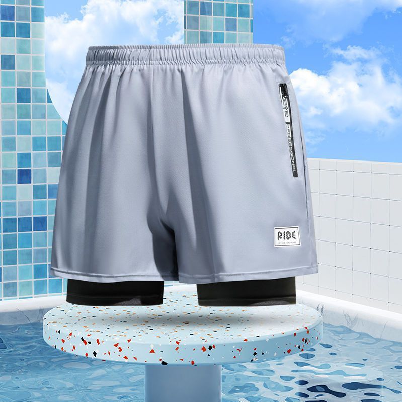 成人双层泳裤男士平角五分款泳衣防尴尬新款专业沙滩成人游泳装备