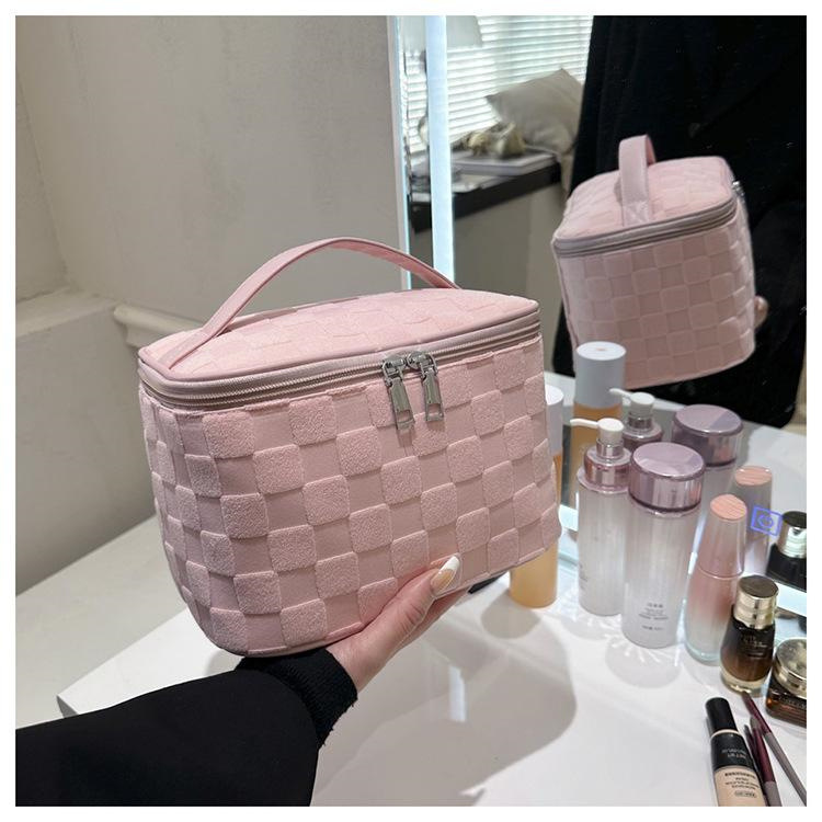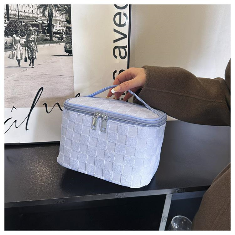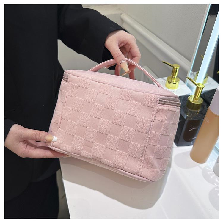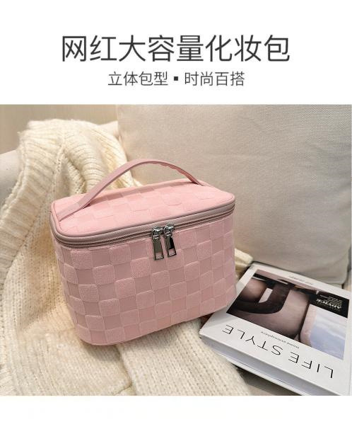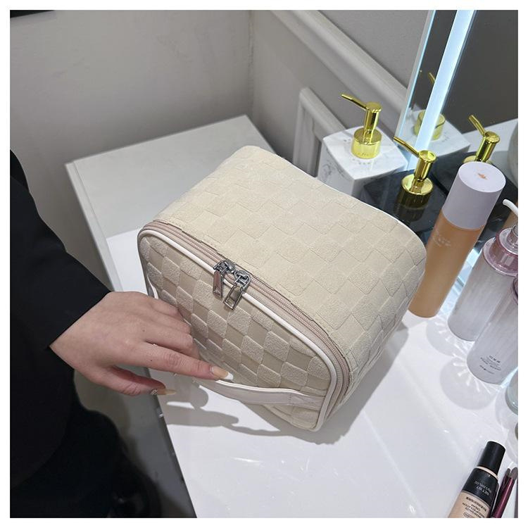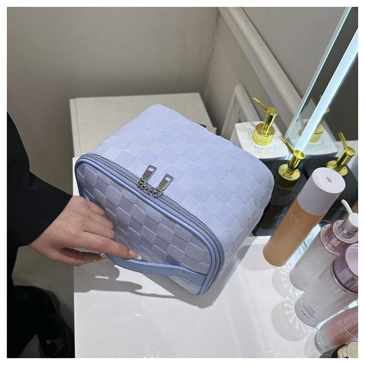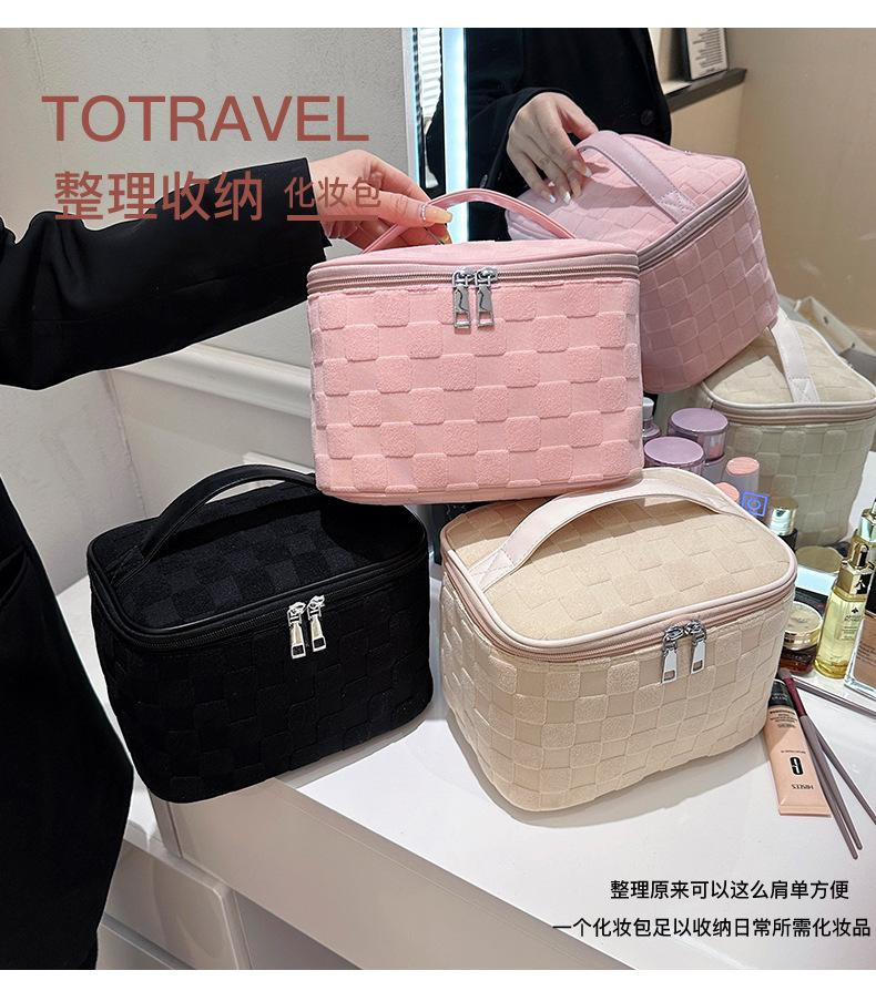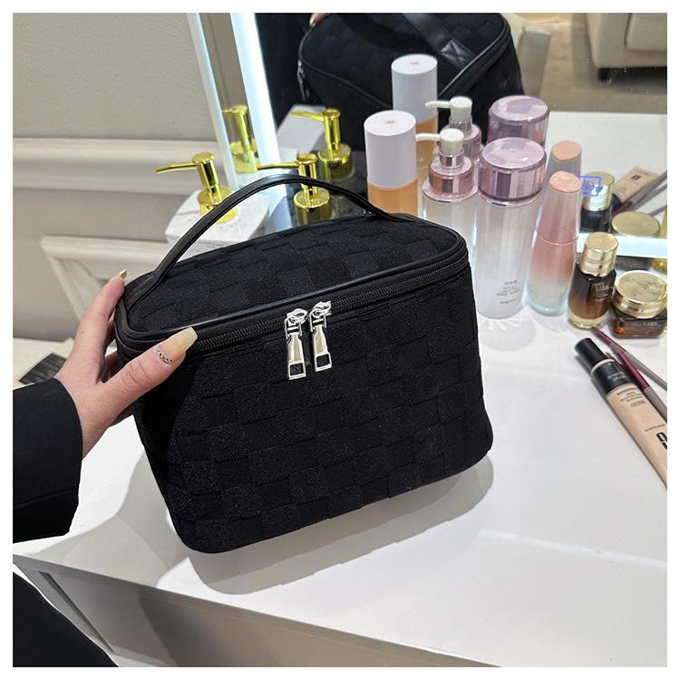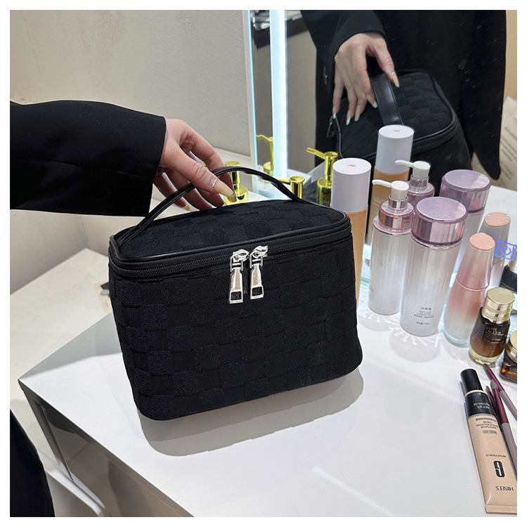 新款棋盘格化妆包女大容量便携式旅行洗漱包化妆品收纳手提包批发