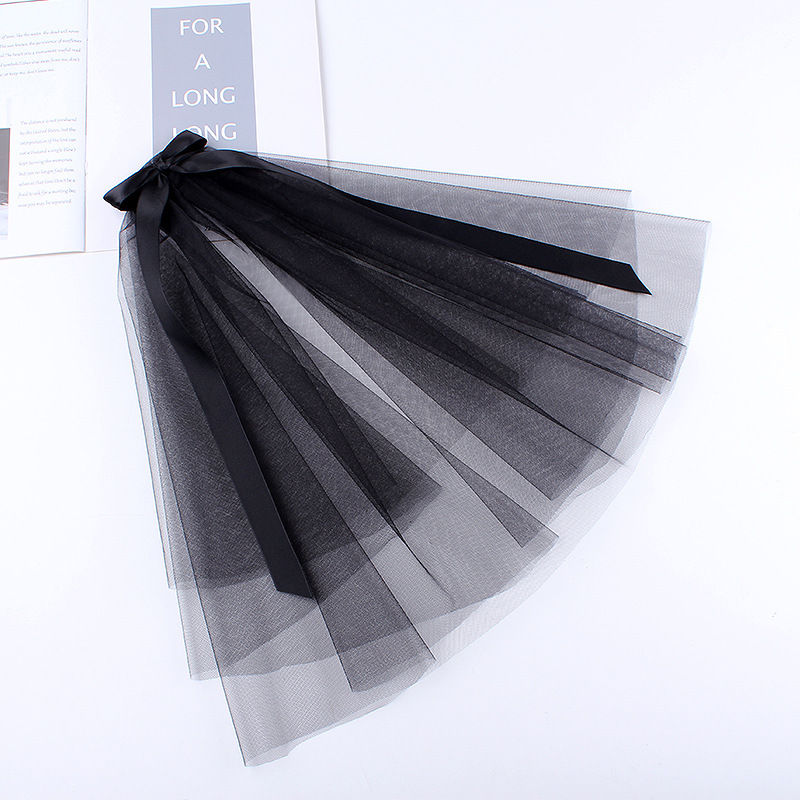 头纱材质是黑色硬纱,垂感好,发梳是合金发梳,非塑料易断材质。黑色素纱头纱长度:78cm。 黑色短款蝴蝶结长度:45cm左右