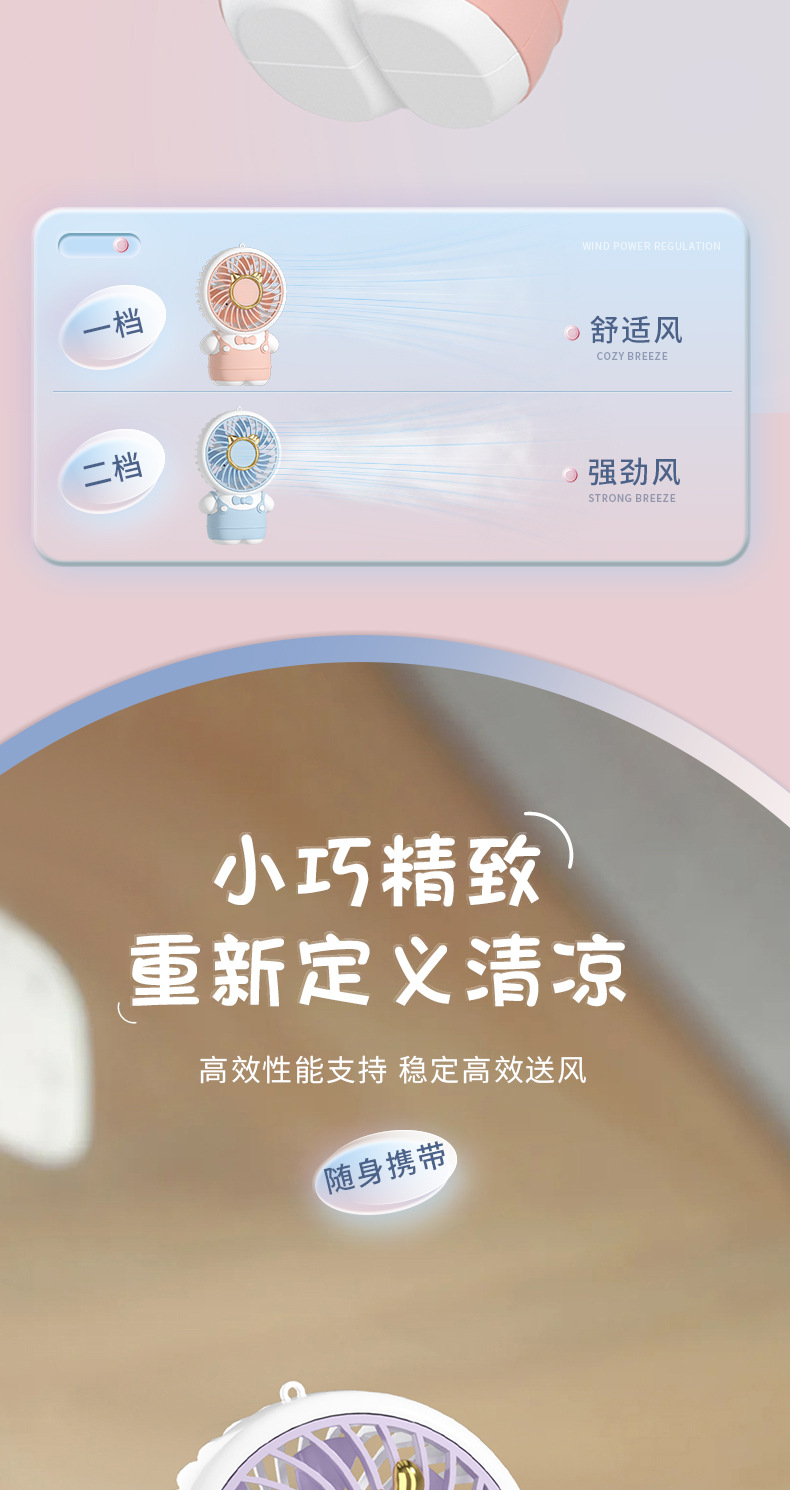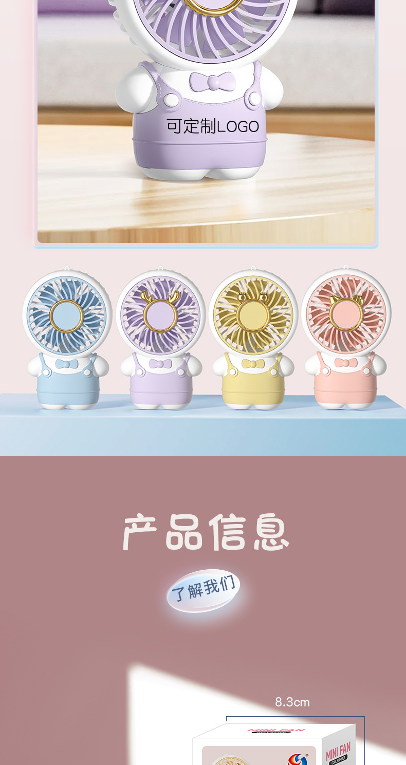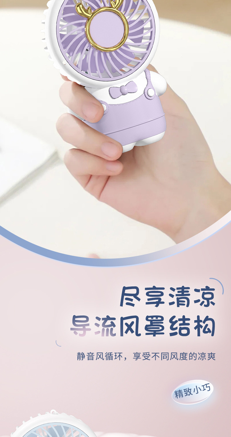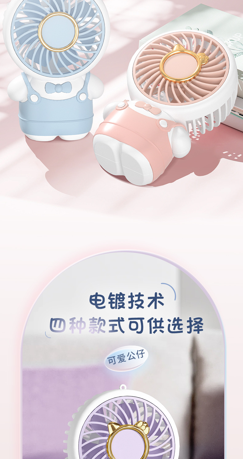 2024新款卡通手持小风扇便携式迷你电扇 高颜值USB充电式手拿风扇