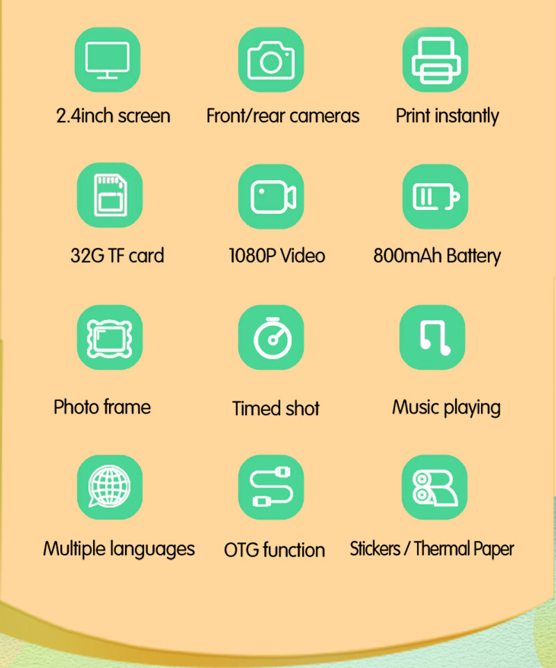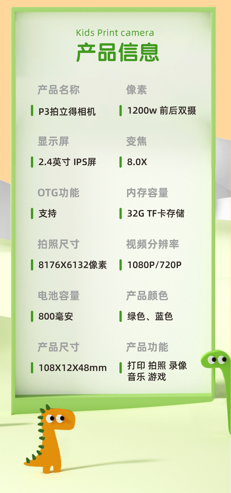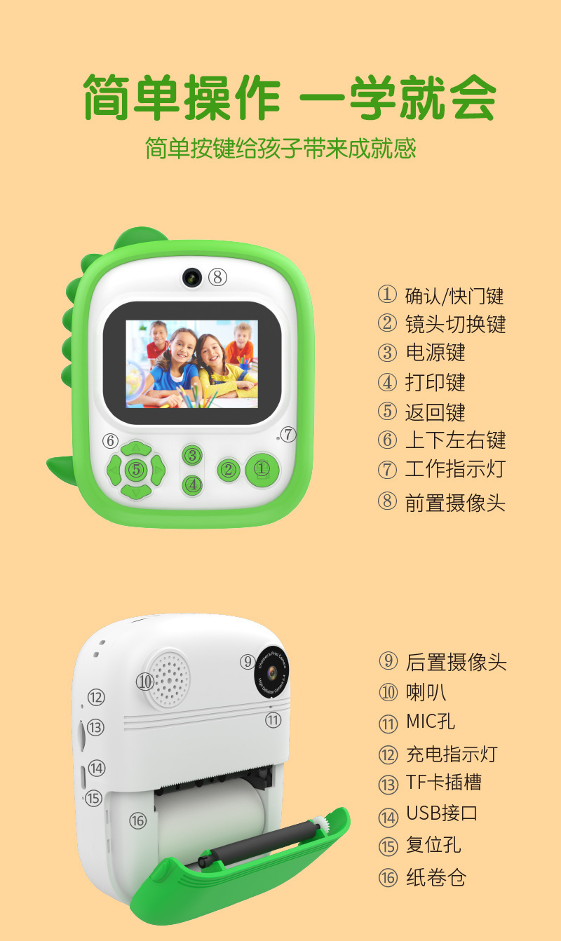 新款拍立得相机可及时打印儿童相机可爱款硅胶套高清双摄工厂批发