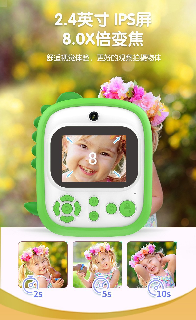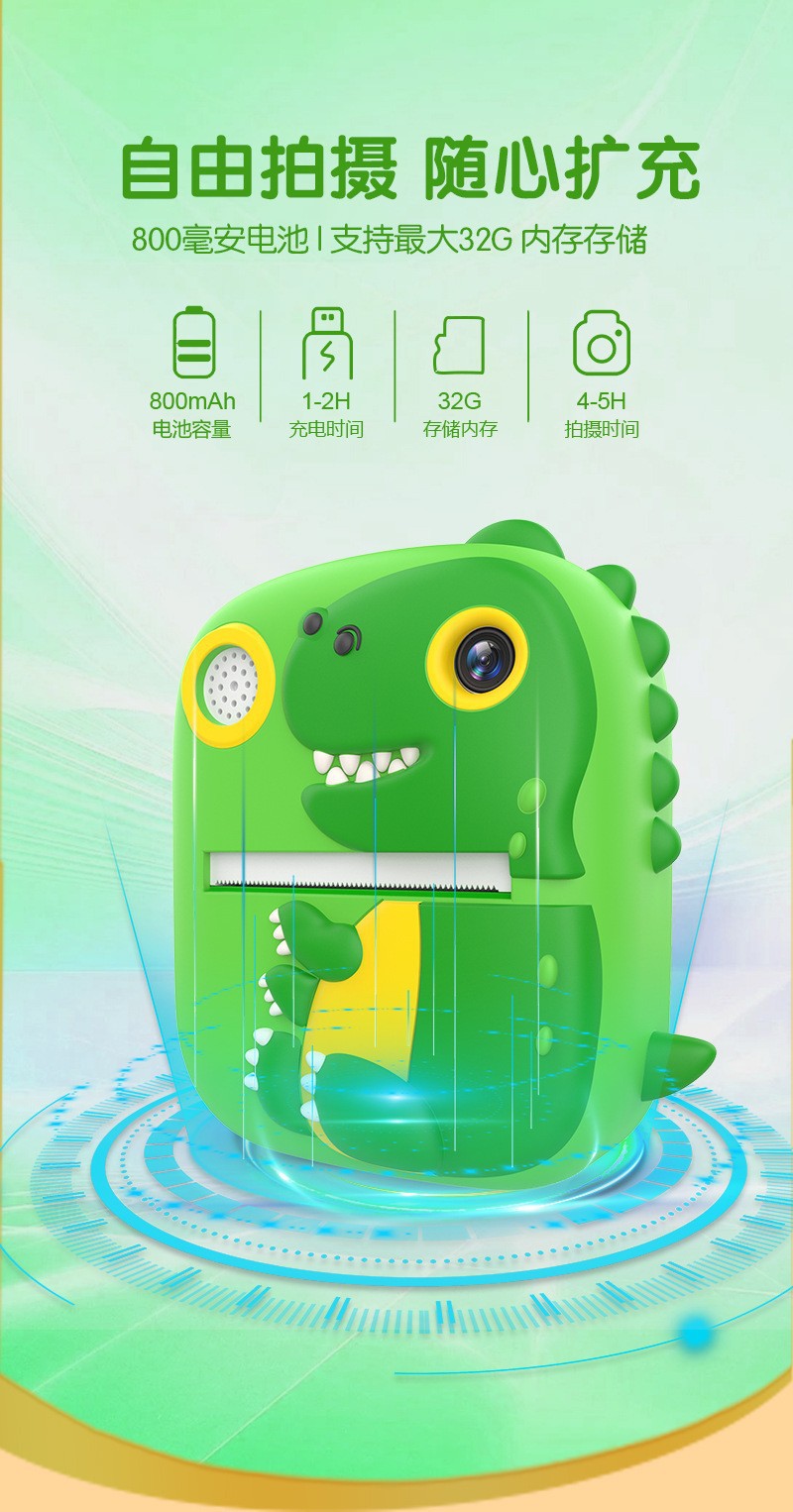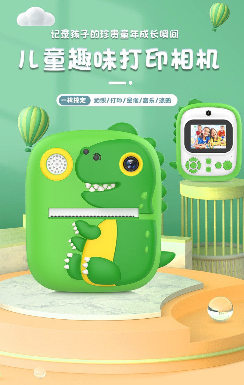 恐龙P3拍立得2024跨境新款高清相机即刻打印免墨热敏纸打印照相机