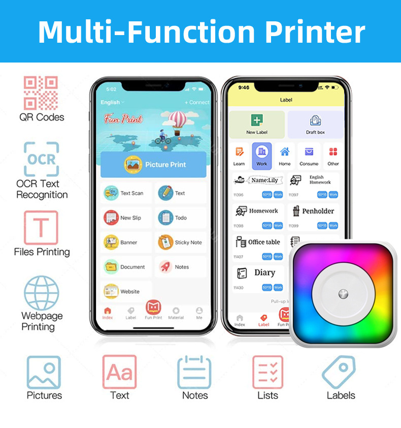 外贸标签打印机连蓝牙便携式手持热敏便贴纸签打印小型口袋错题机
