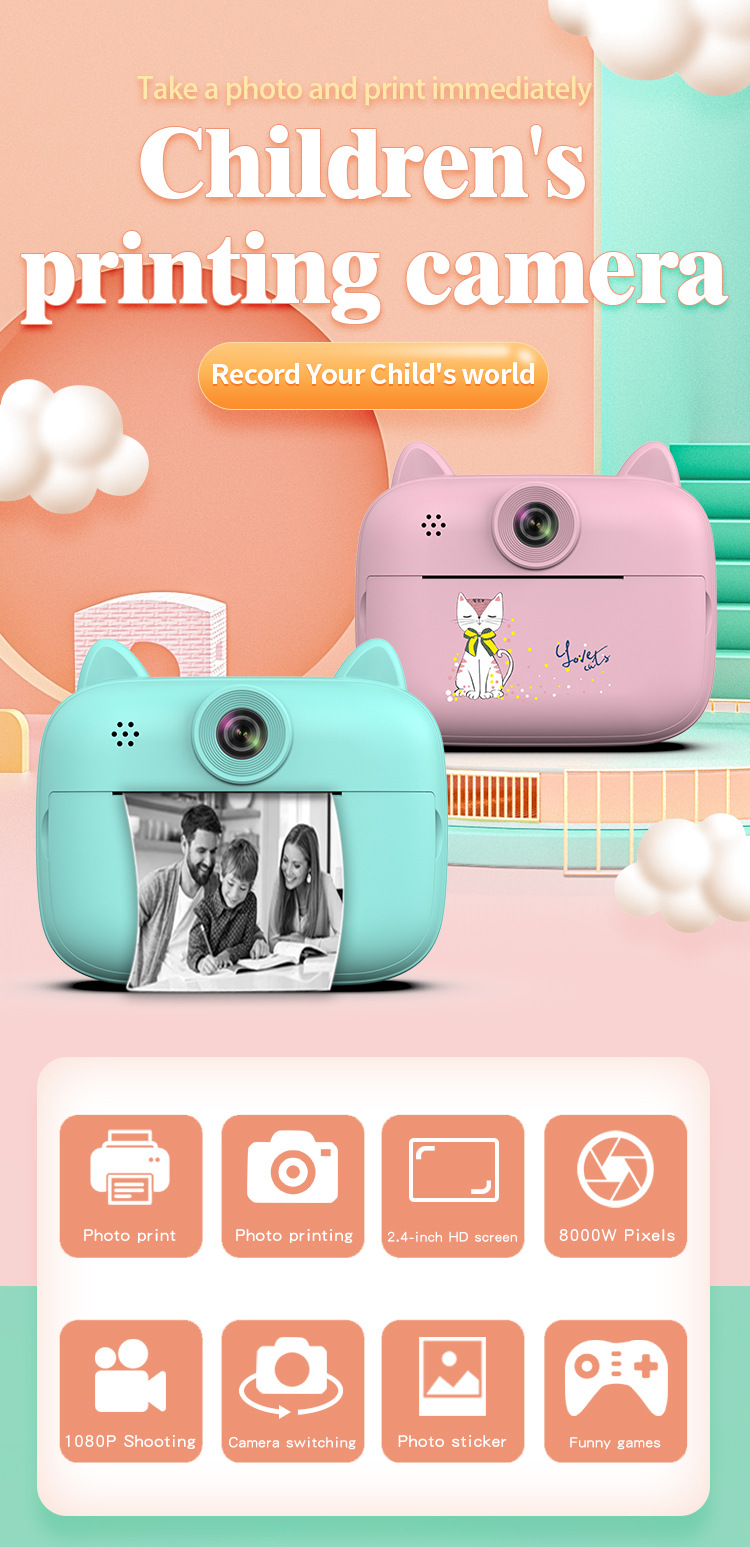 儿童拍立得跨境新款可拍照可打印迷你数码照相机儿童迷你打印机