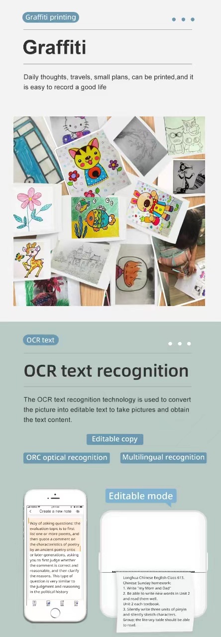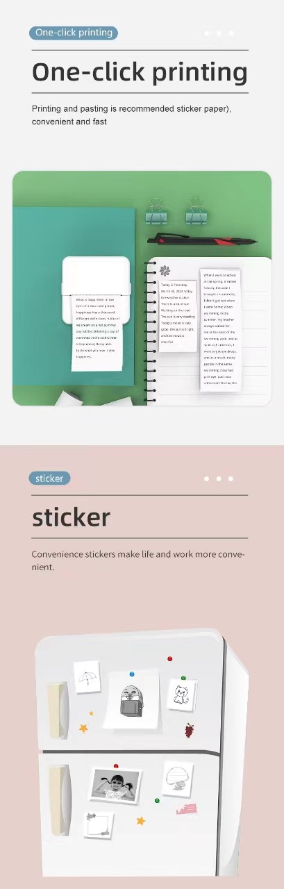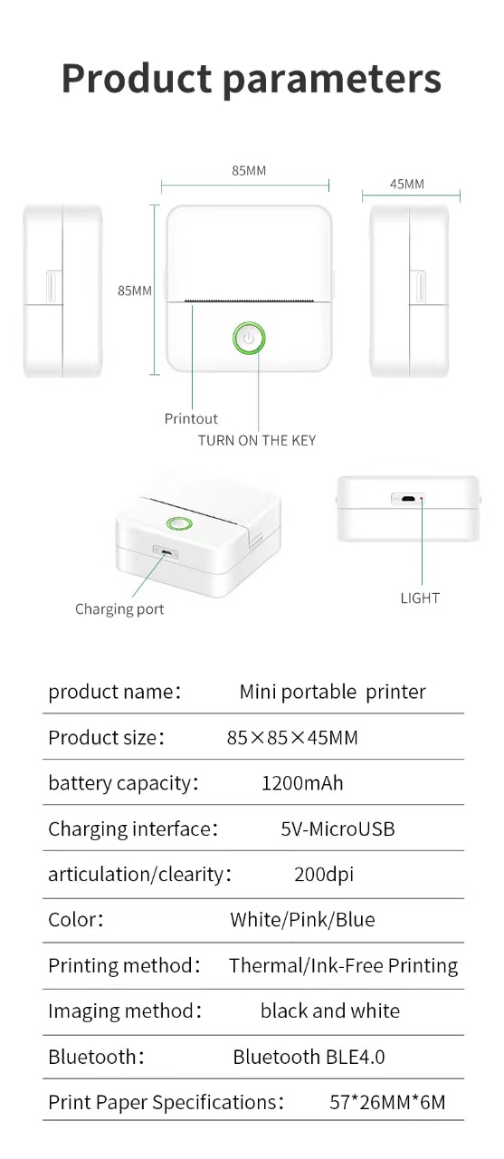 亚马逊新款便携式打印机蓝牙连接无墨热敏学生口袋迷你标签打印机