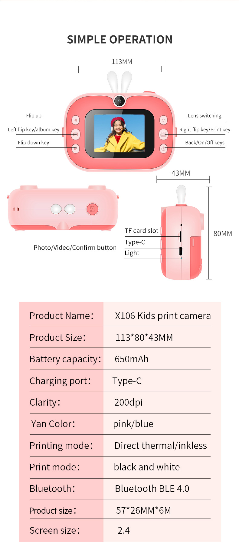 跨境X106新款儿童拍照录像高清数码照相机工厂批发 迷你儿童相机