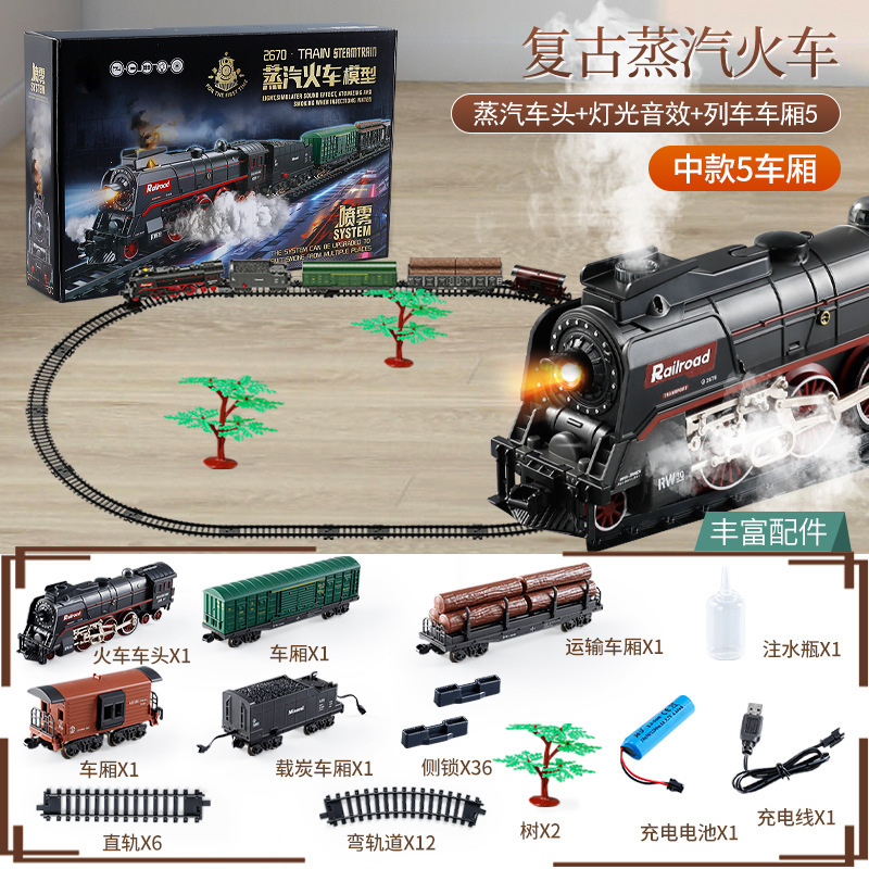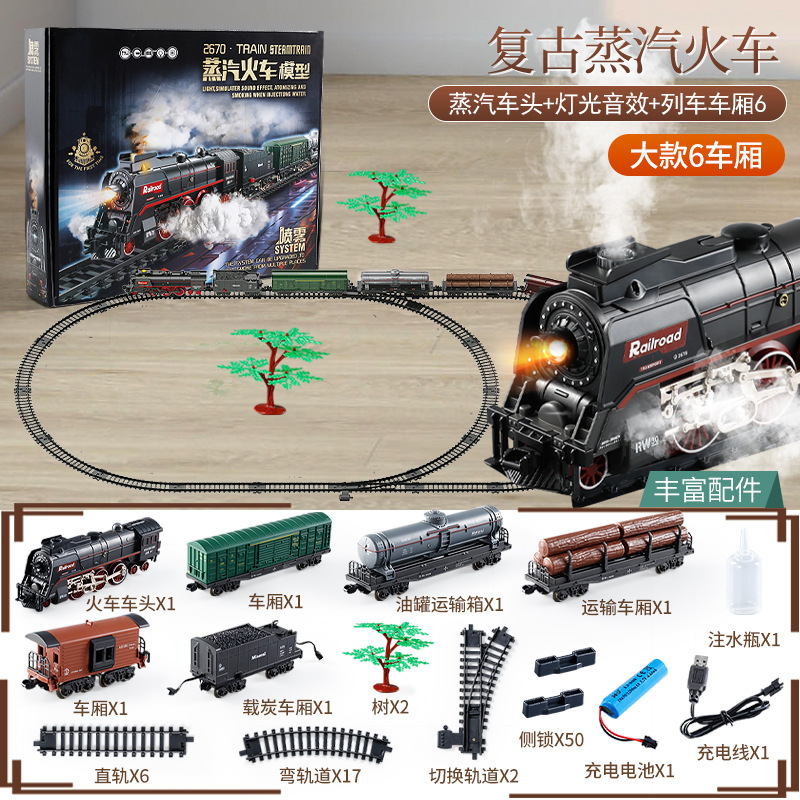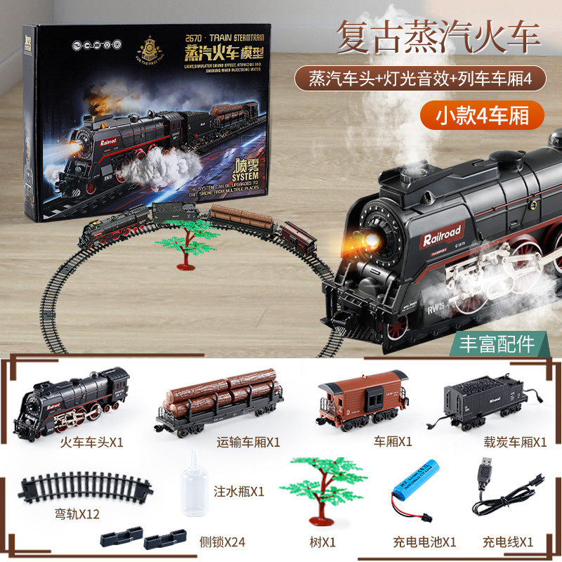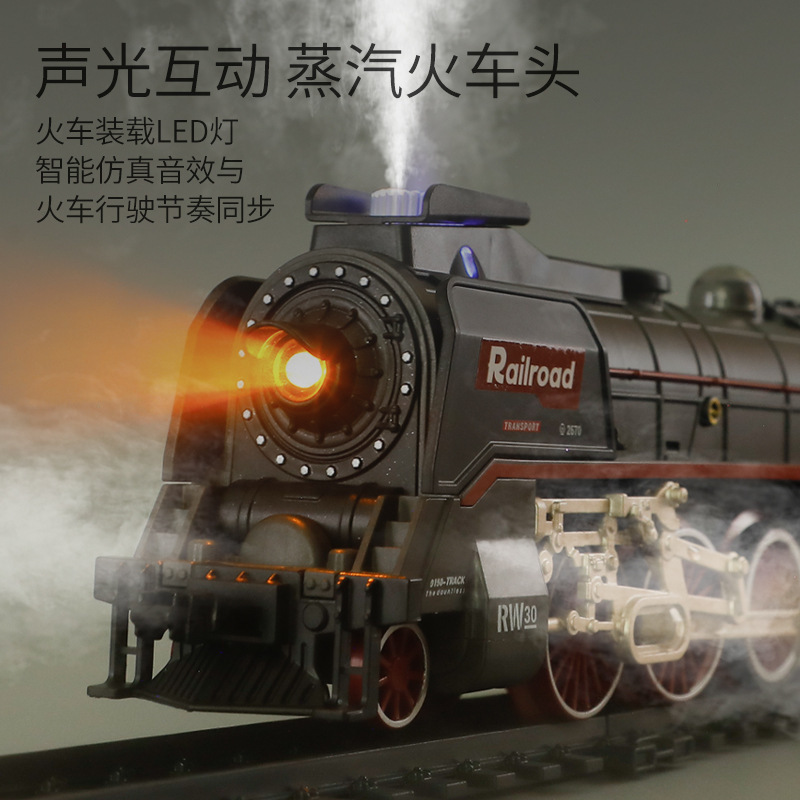 复古电动火车轨道玩具声光喷雾轨道小火车蒸汽火车套装模型男孩