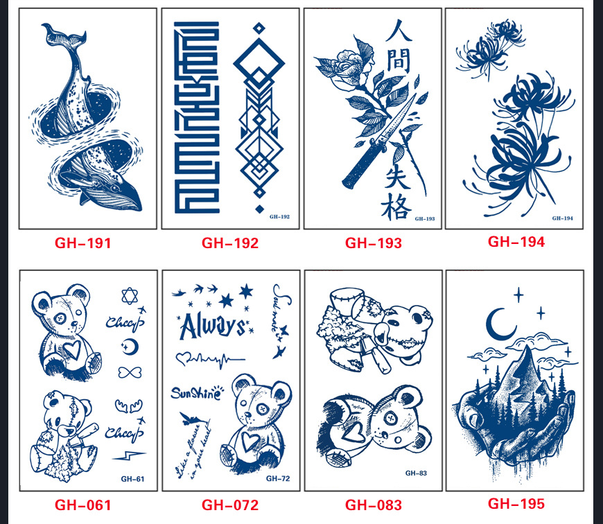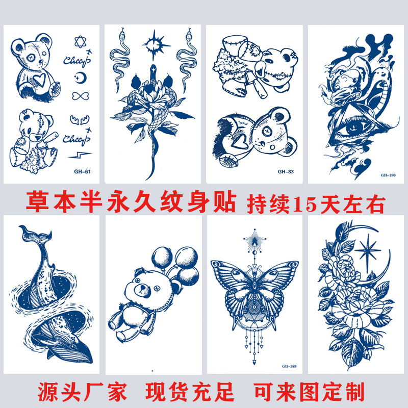 半永久果汁草本纹身贴跨境防水持久男女刺青文字纹身贴纸仿真文身