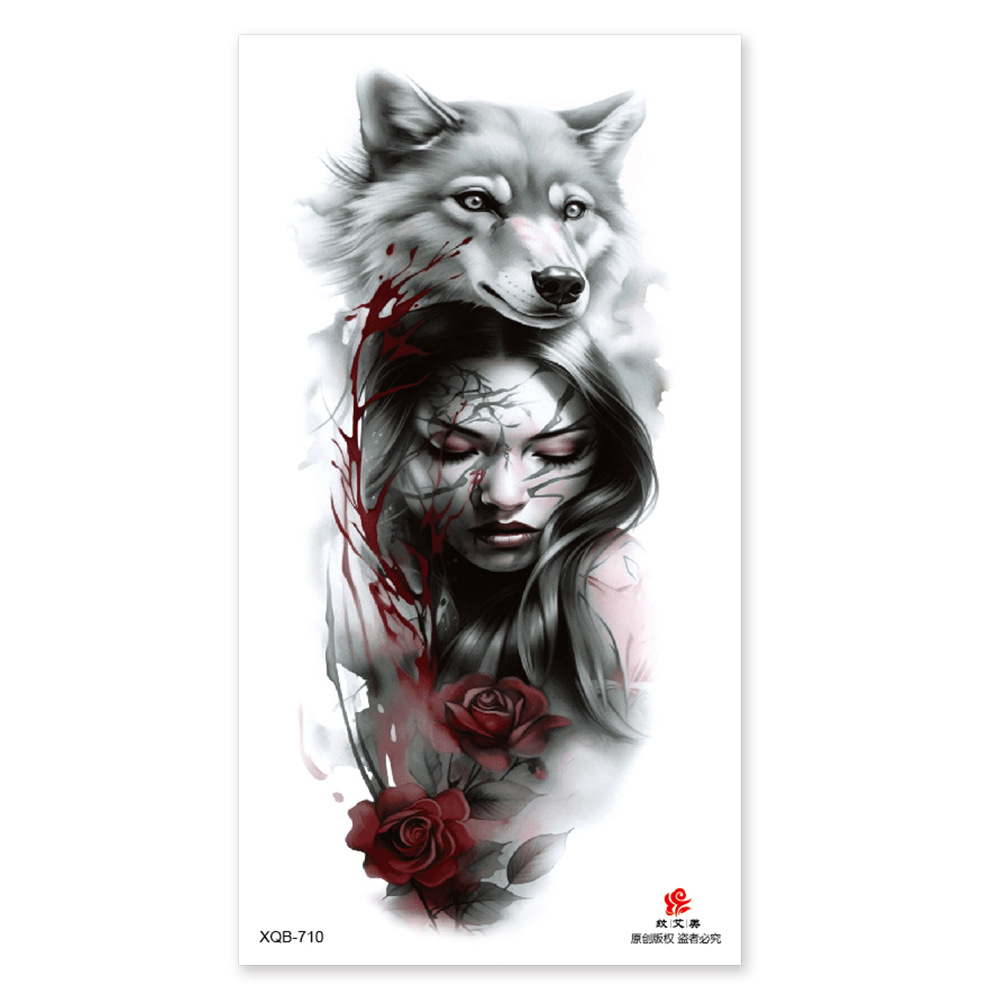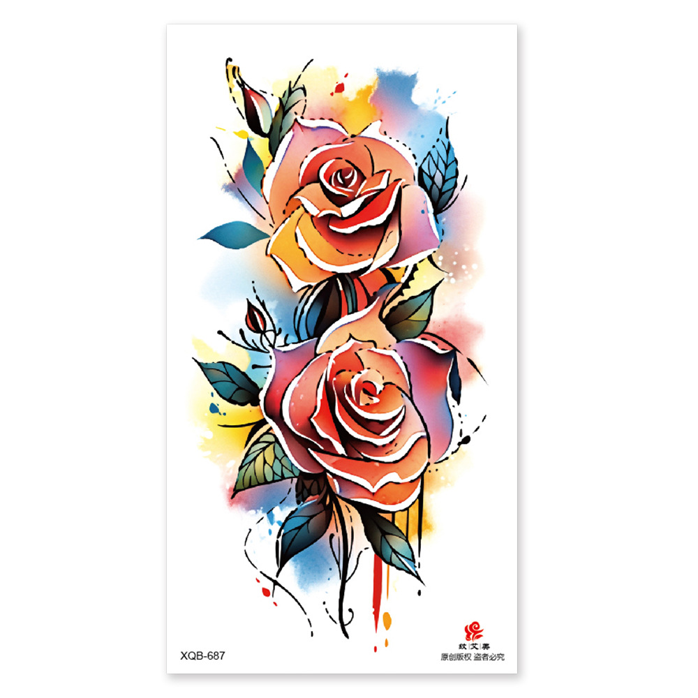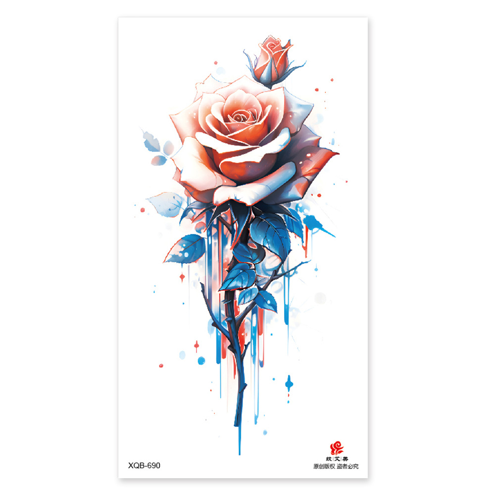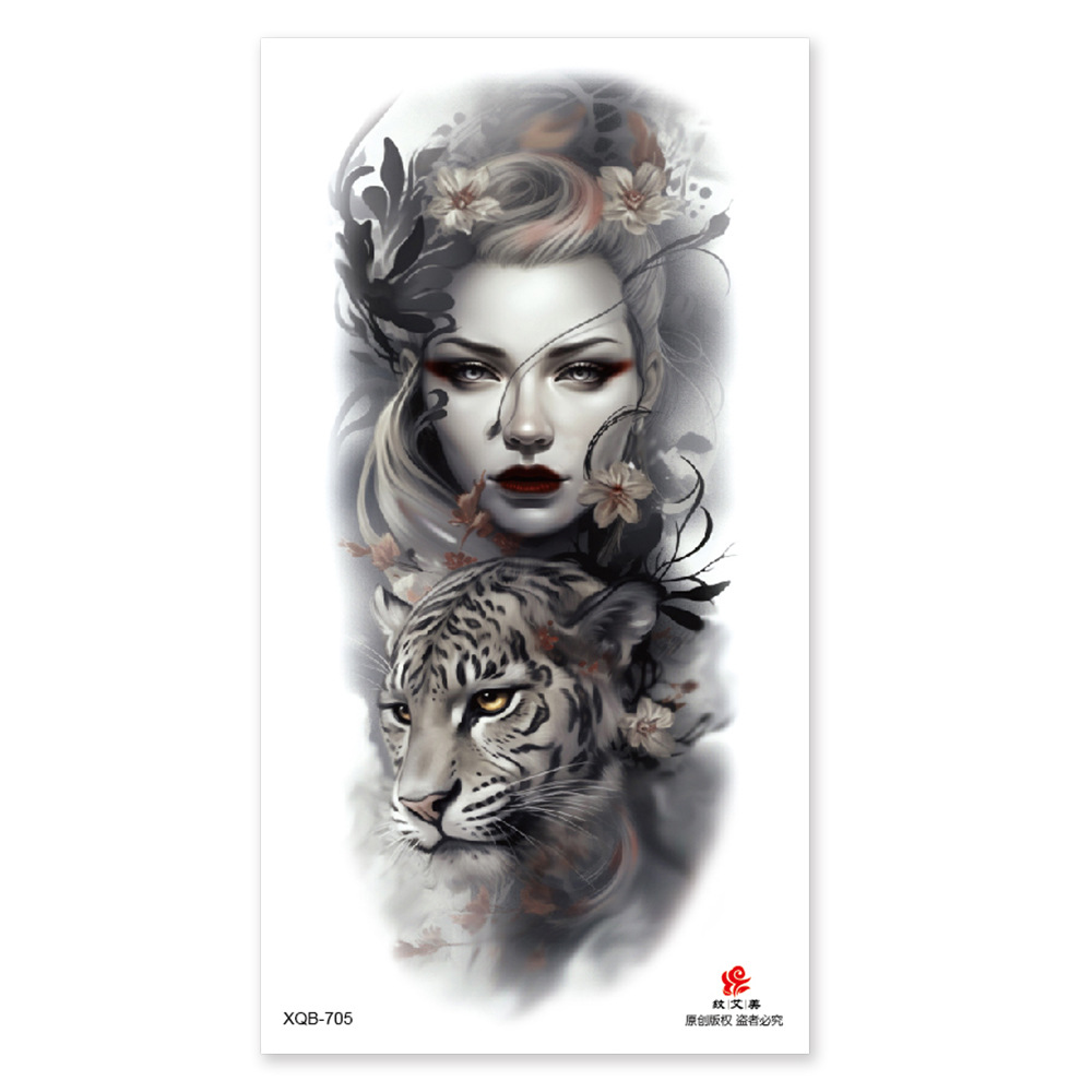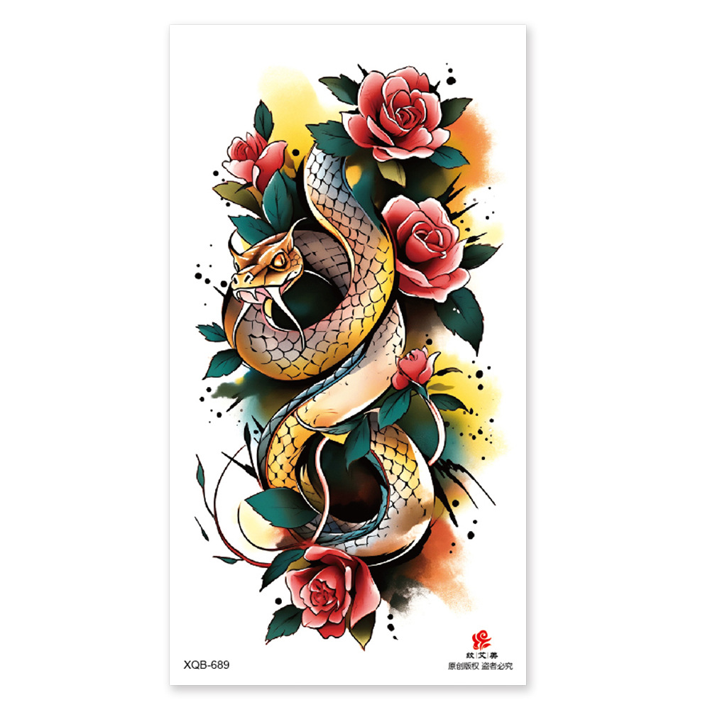 24年新款水墨画彩色花朵蛇防水纹身贴动物老虎人物写实纹身贴纸
