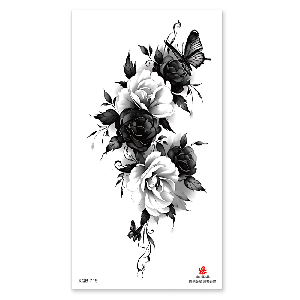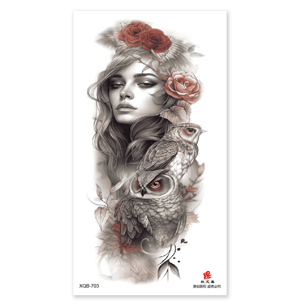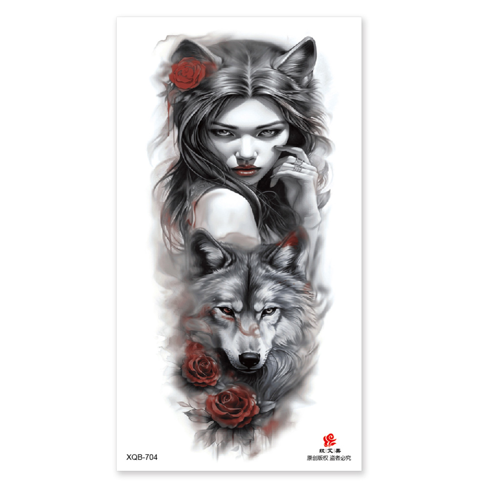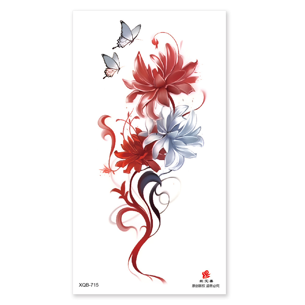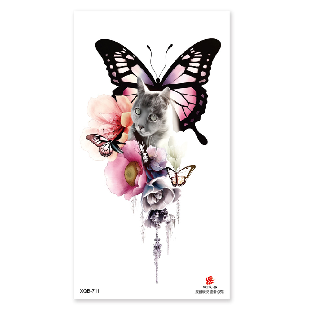 24年新款水墨画彩色花朵蛇防水纹身贴动物老虎人物写实纹身贴纸