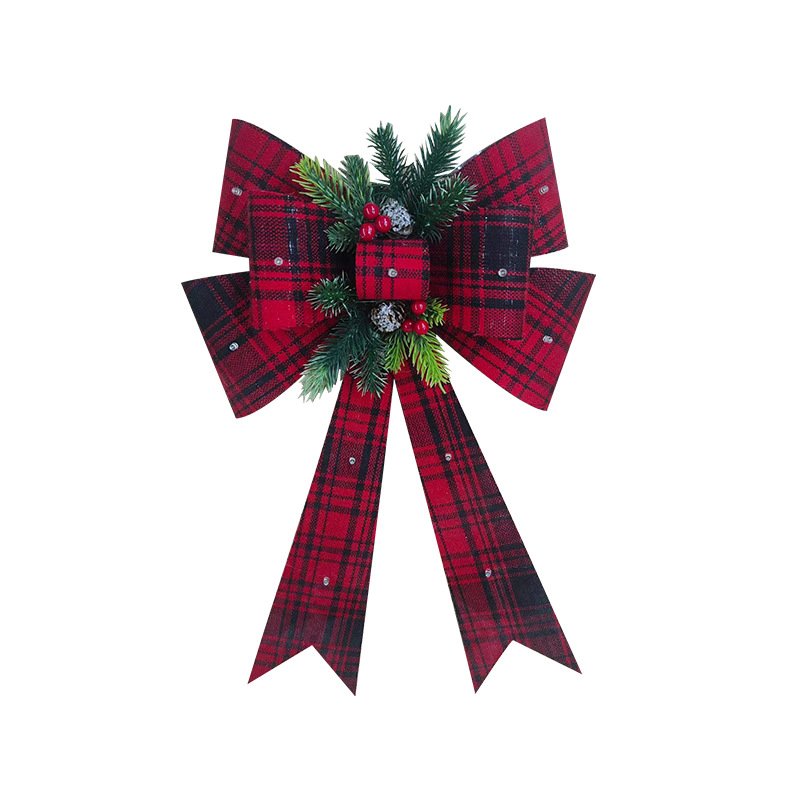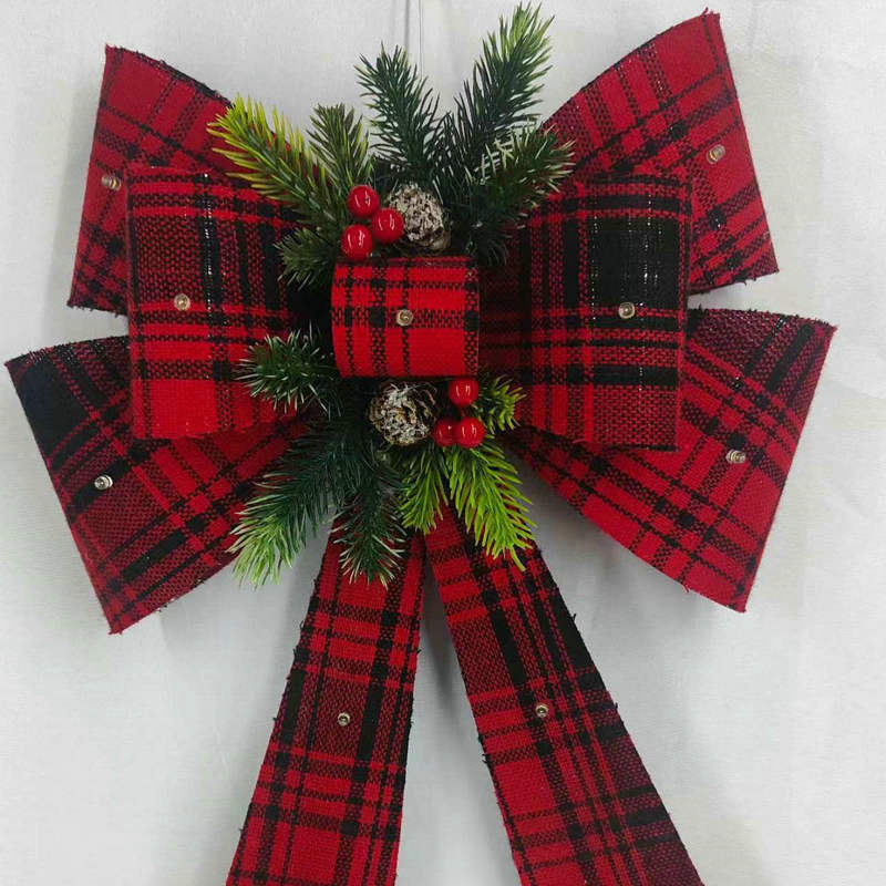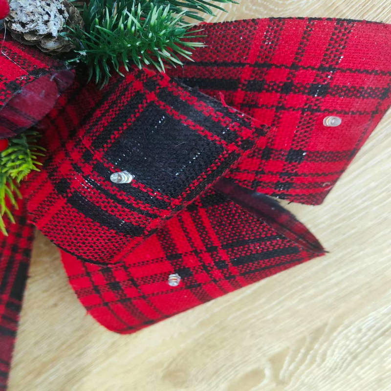圣诞节装饰蝴蝶结树顶星黑红格子松果圣诞树装饰挂件节日场景布置