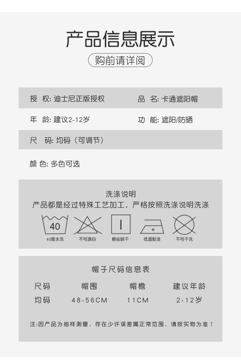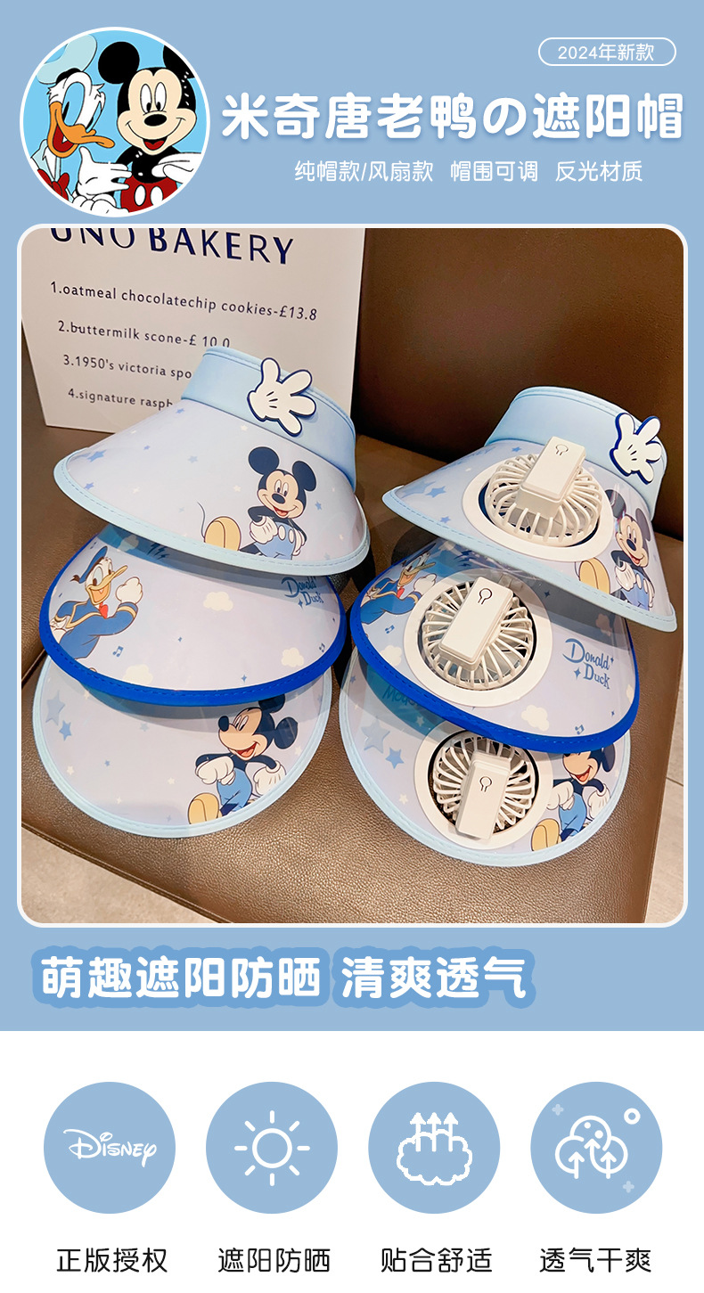 佐功佑口米奇唐老鸭防紫外线防晒儿童帽遮阳卡通太阳帽