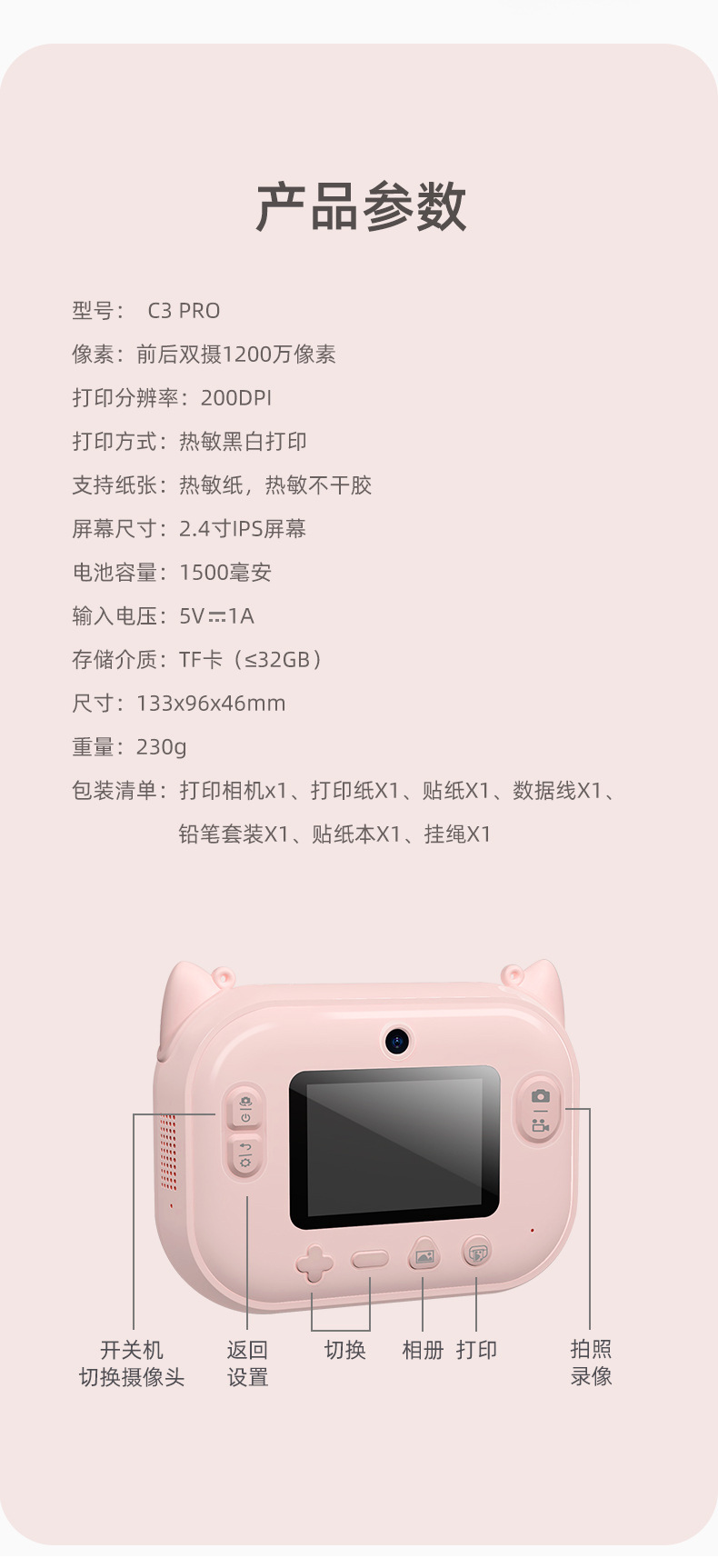 新品儿童C3打印相机数码热敏打印相机高清拍照相机拍立得拍照摄影