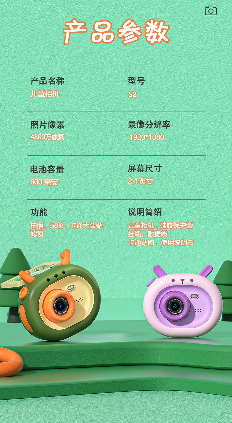新款高颜值儿童照相机180度翻屏高清数码相机手持录像机