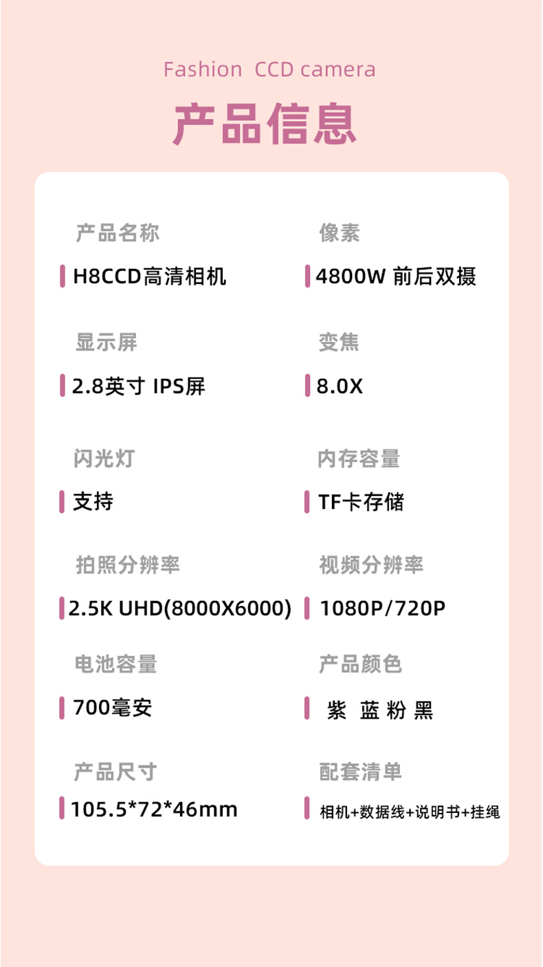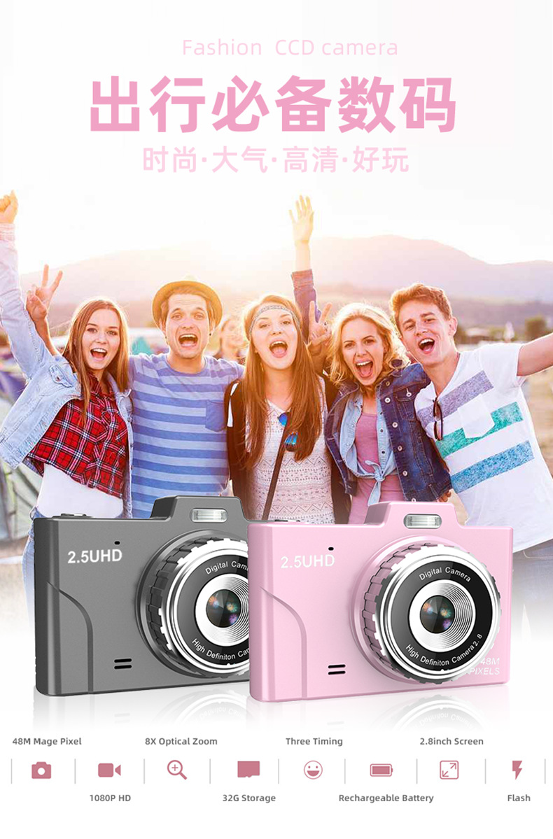 跨境4800W高清像素CCD照相机学生相机2.8英寸护眼便捷式数码相机
