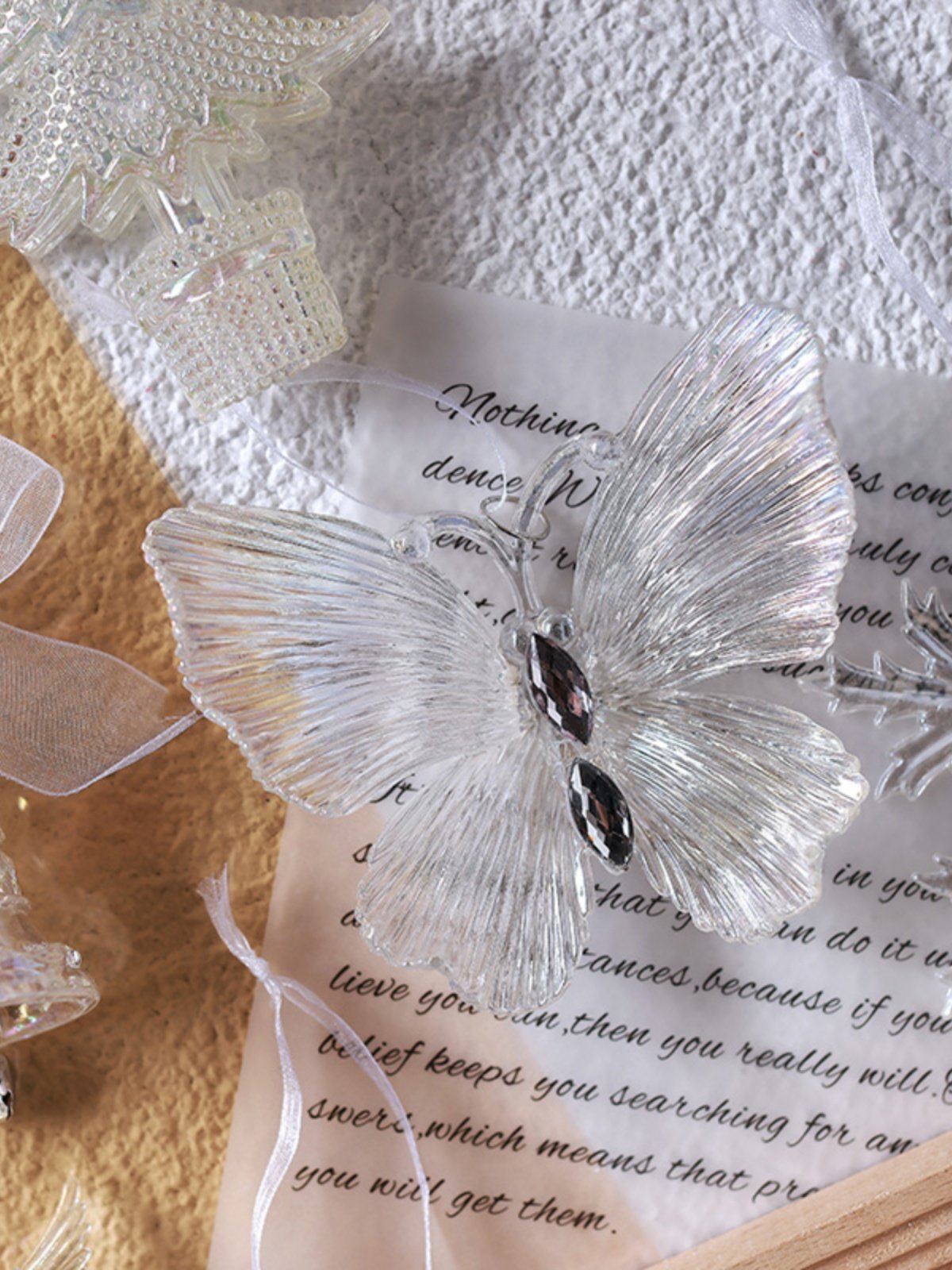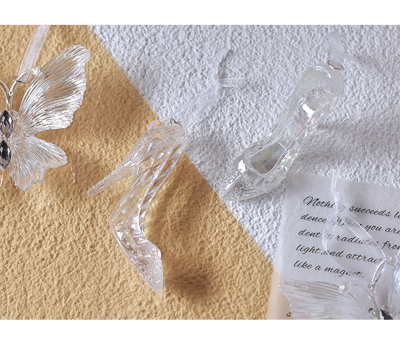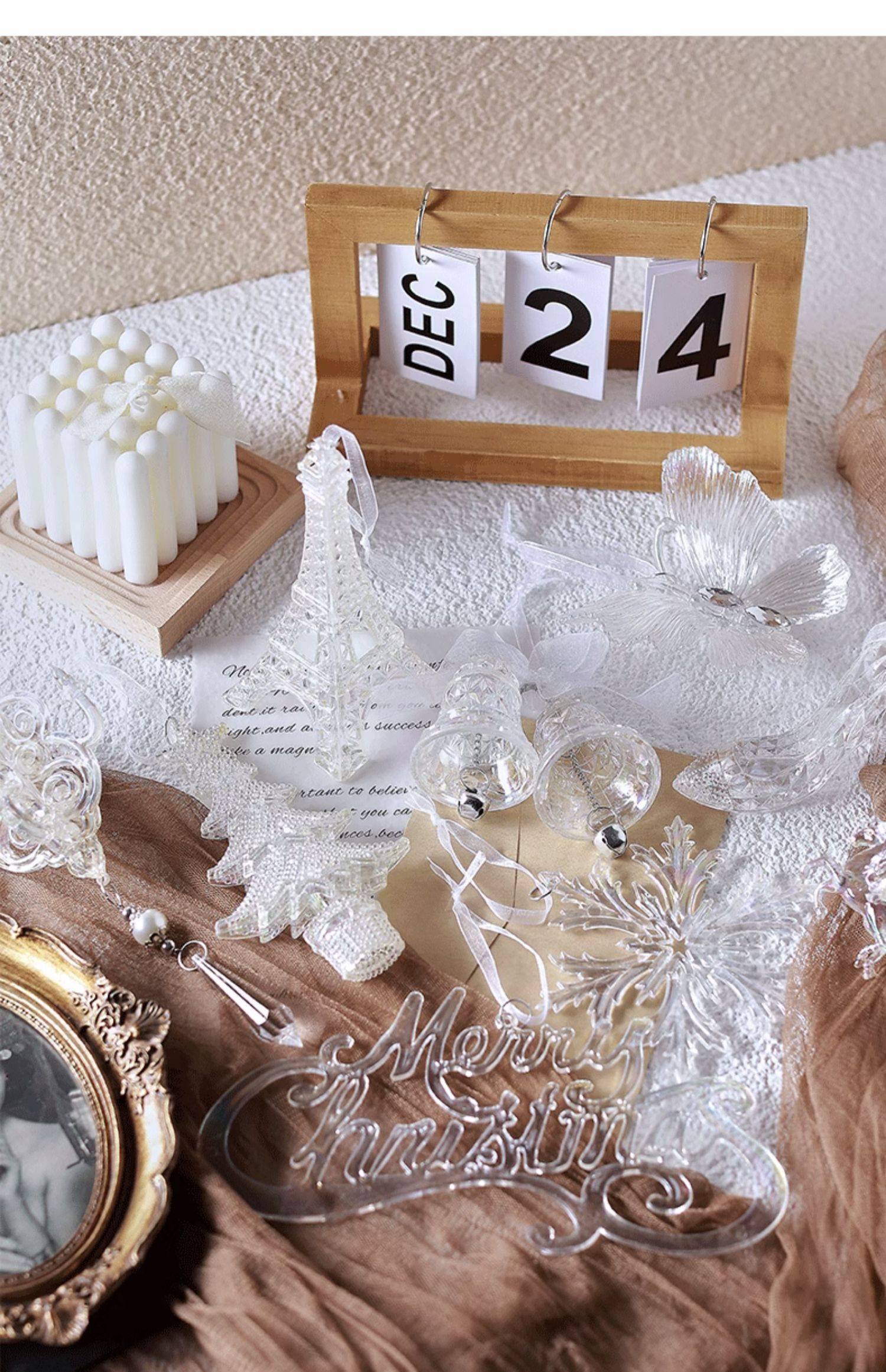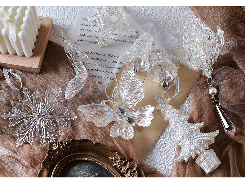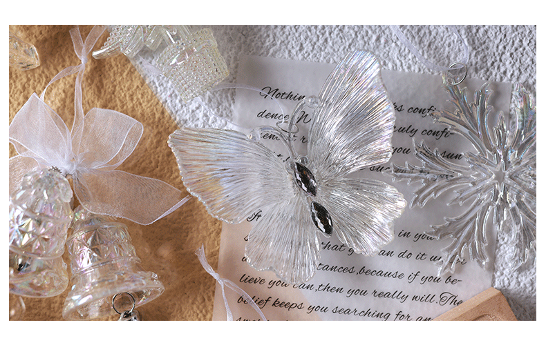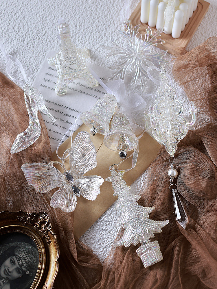 泓翰 圣诞节透明彩色挂件圣诞树装饰雪花蝴蝶铃铛挂件圣诞装饰品