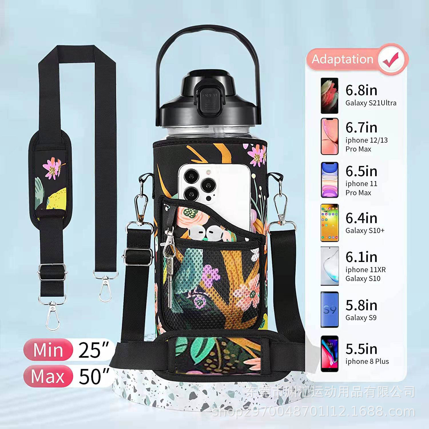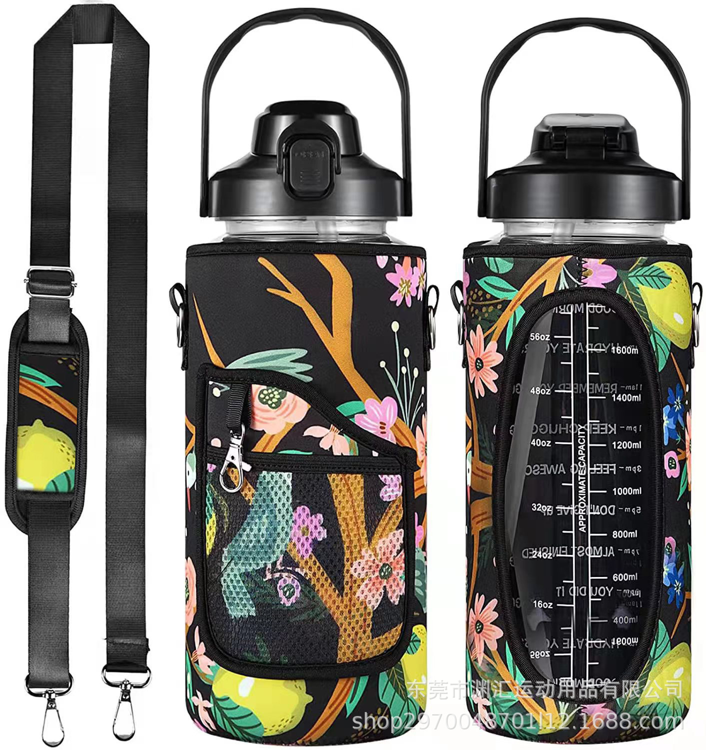 亚马逊64oz保温杯潜水料杯套氯丁橡胶斜挎水壶袋2L保护套水杯包袋