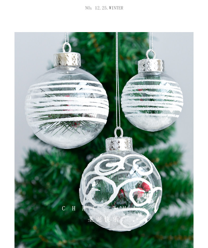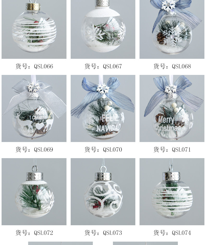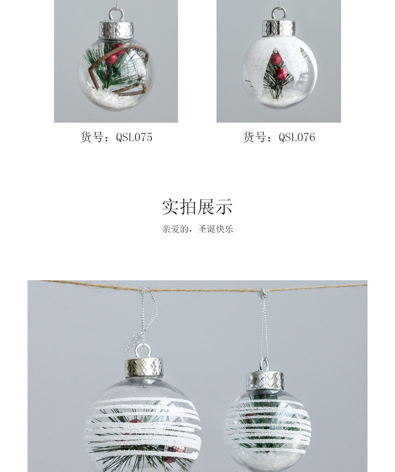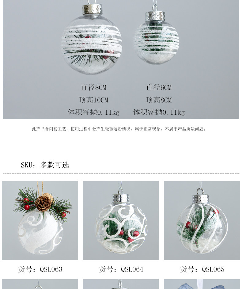圣诞节装饰吊球内置景观松针叶透明彩绘圣诞球树装饰挂件场景布置
