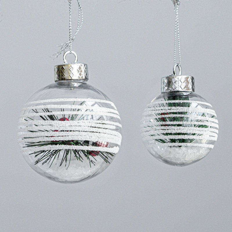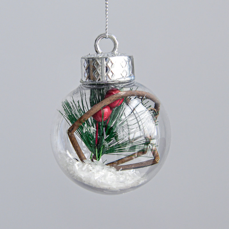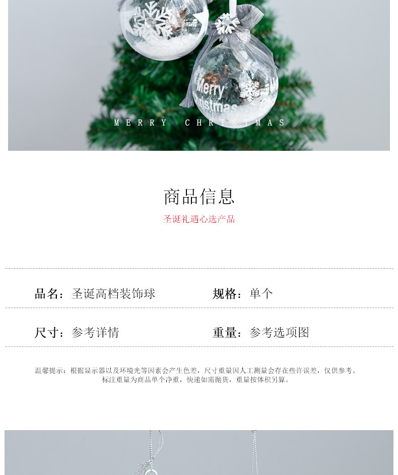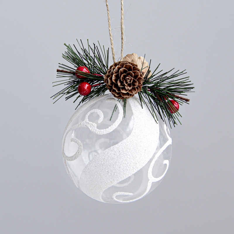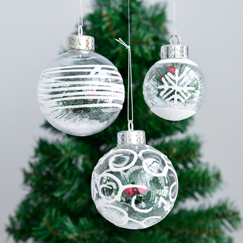 圣诞节装饰吊球内置景观松针叶透明彩绘圣诞球树装饰挂件场景布置