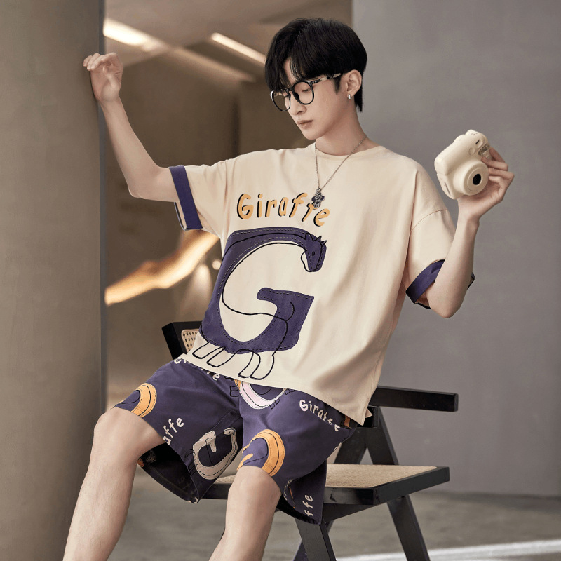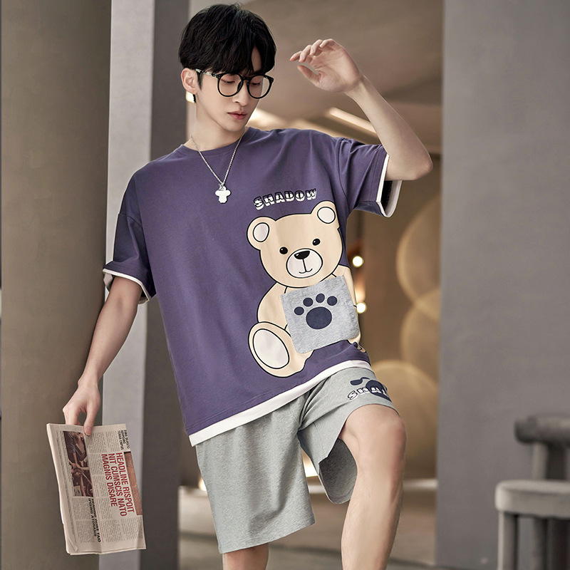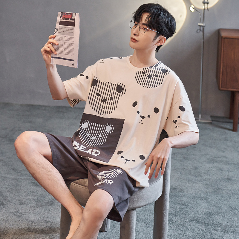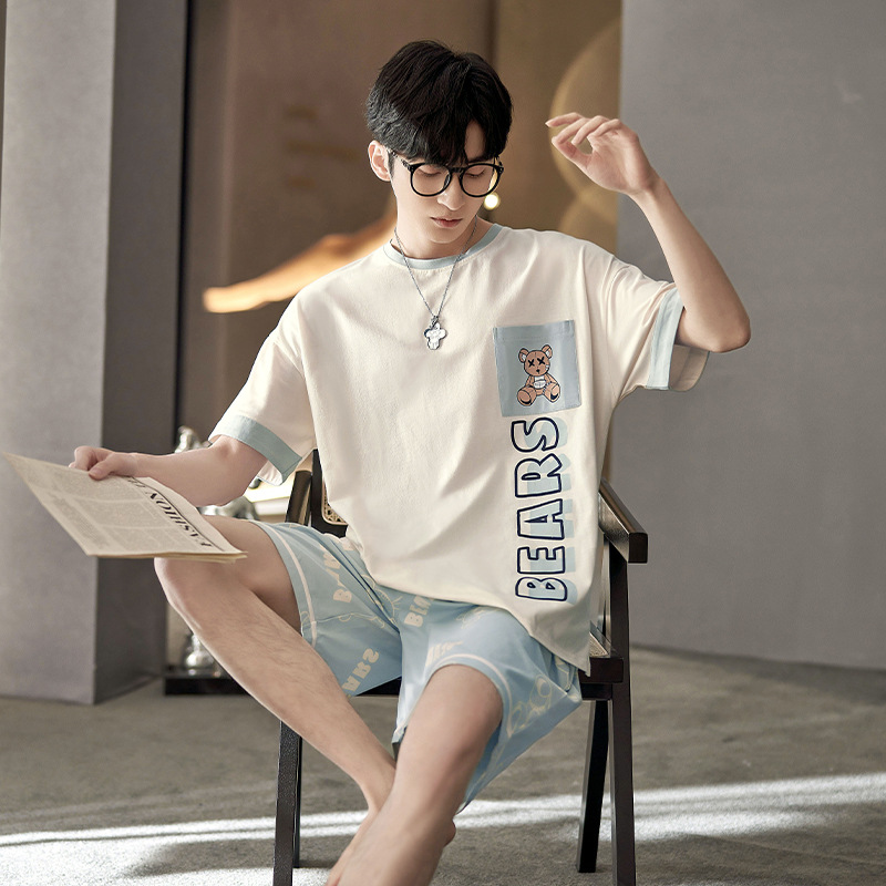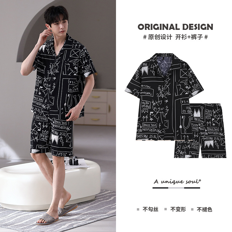 夏季新款冰丝男士睡衣短袖短裤薄款丝绸夏天学生青少年家居服套装