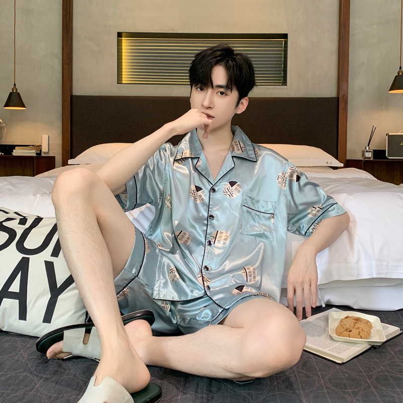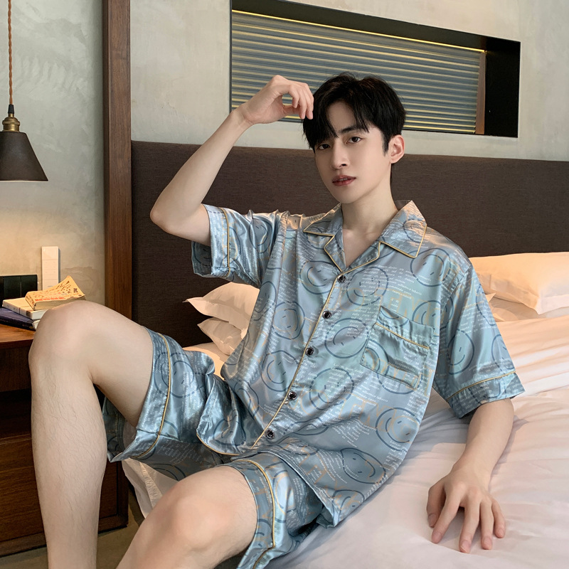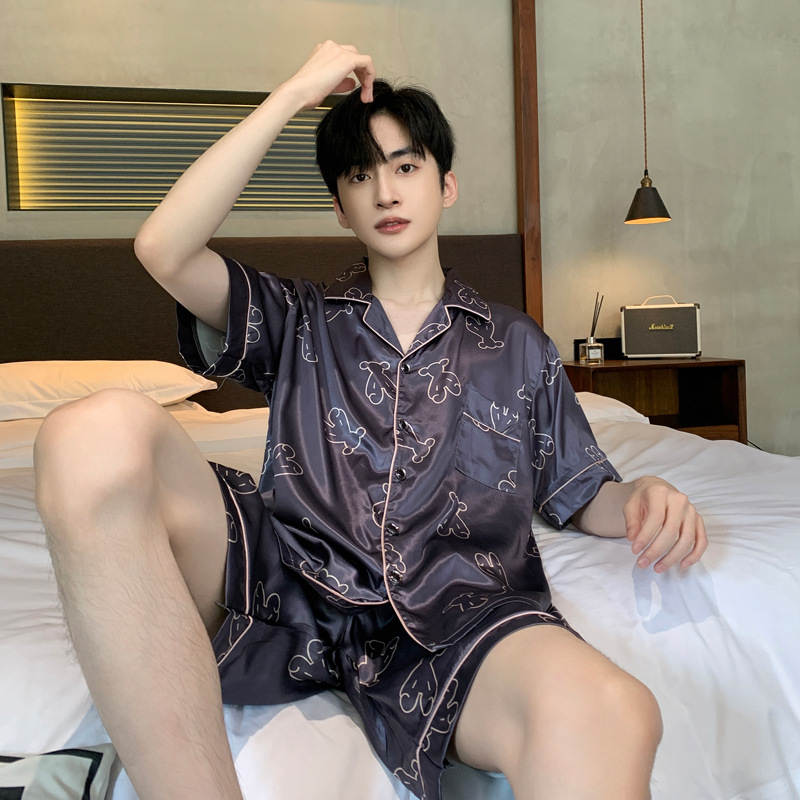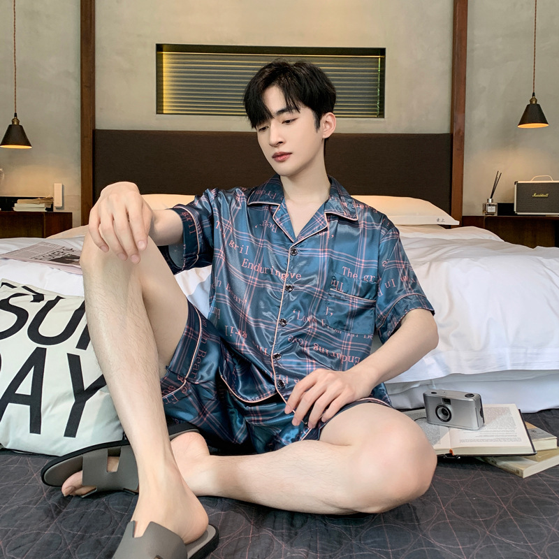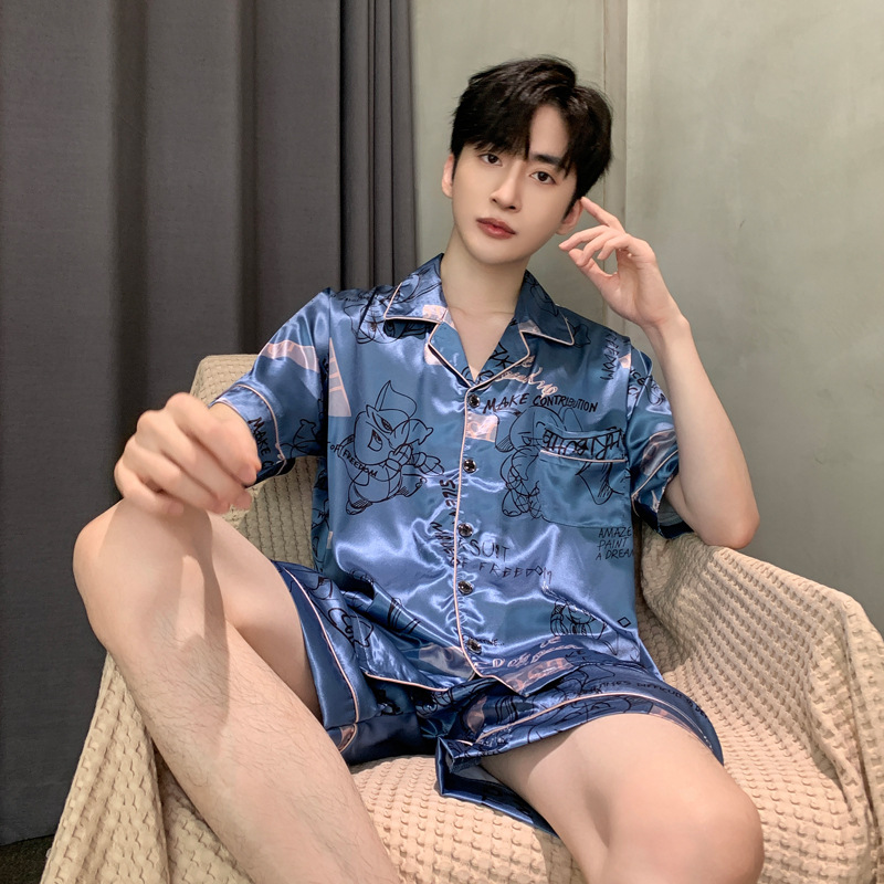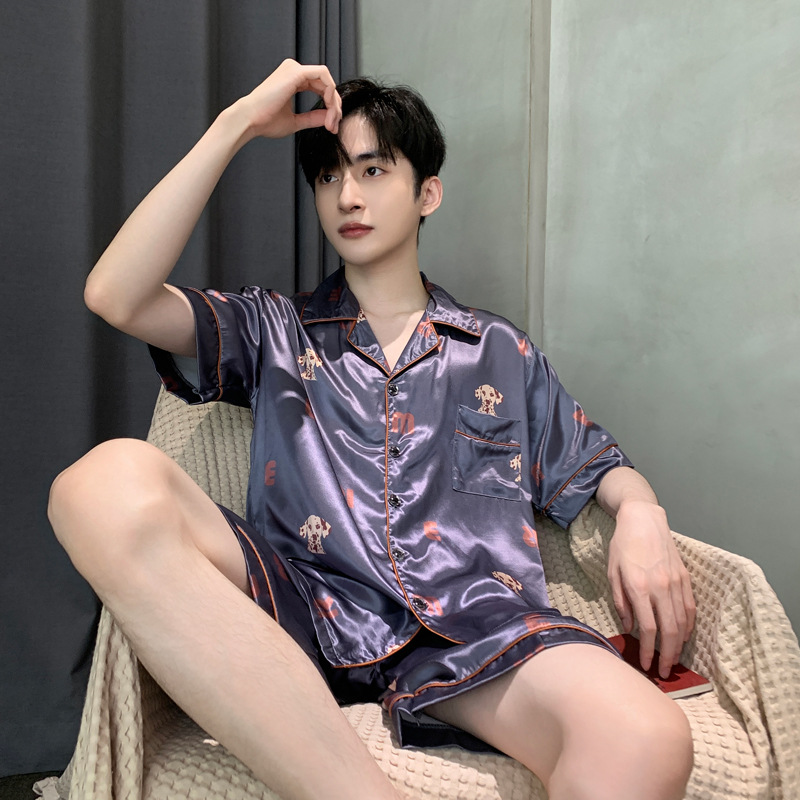 男士睡衣男夏冰丝短袖薄款夏季加肥加大青少年宽松家居服厂家批发